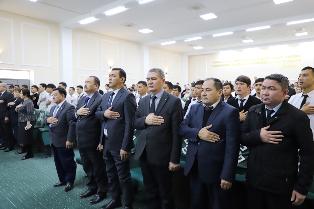 Ózbekstan hám Qaraqalpaqstan Respublikalarınıń mámleketlik gimnleri menen baslanǵan ilajdı institut rektorı wazıypasın waqıtsha atqarıwshısı Q.Qodirov basqarıp bardı.