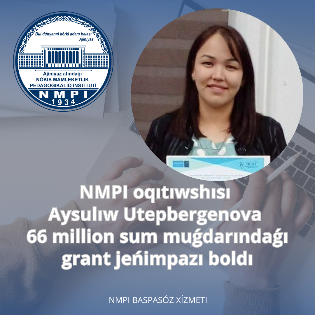NMPI oqıtıwshısı Aysulıw Utepbergenova 66 million sum muǵdarındaǵı grant jeńimpazı boldı