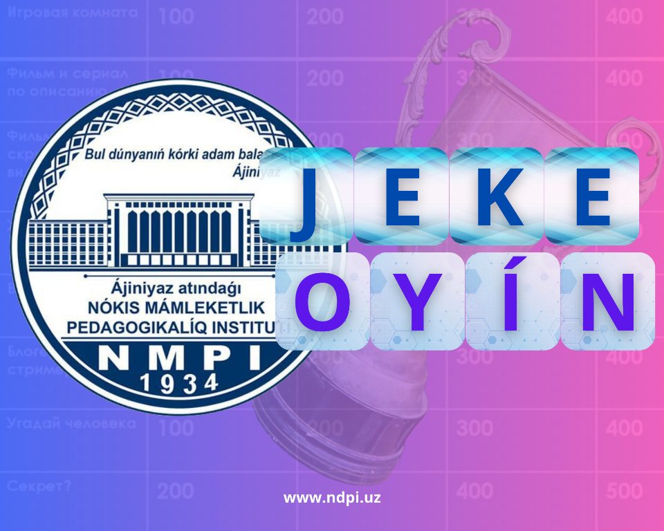 Student-jaslardıń sabaqtan bos waqıtların mazmunlı ótkeriw maqsetinde Ájiniyaz atındaǵı Nókis mámleketlik pedagogikalıq institutı studentleri arasında jazba saylap alıw, topar, yarım final hám final basqıshlarınan ibarat bolǵan Jeke oyın intellektual turniri shólkemlestirilmekte.