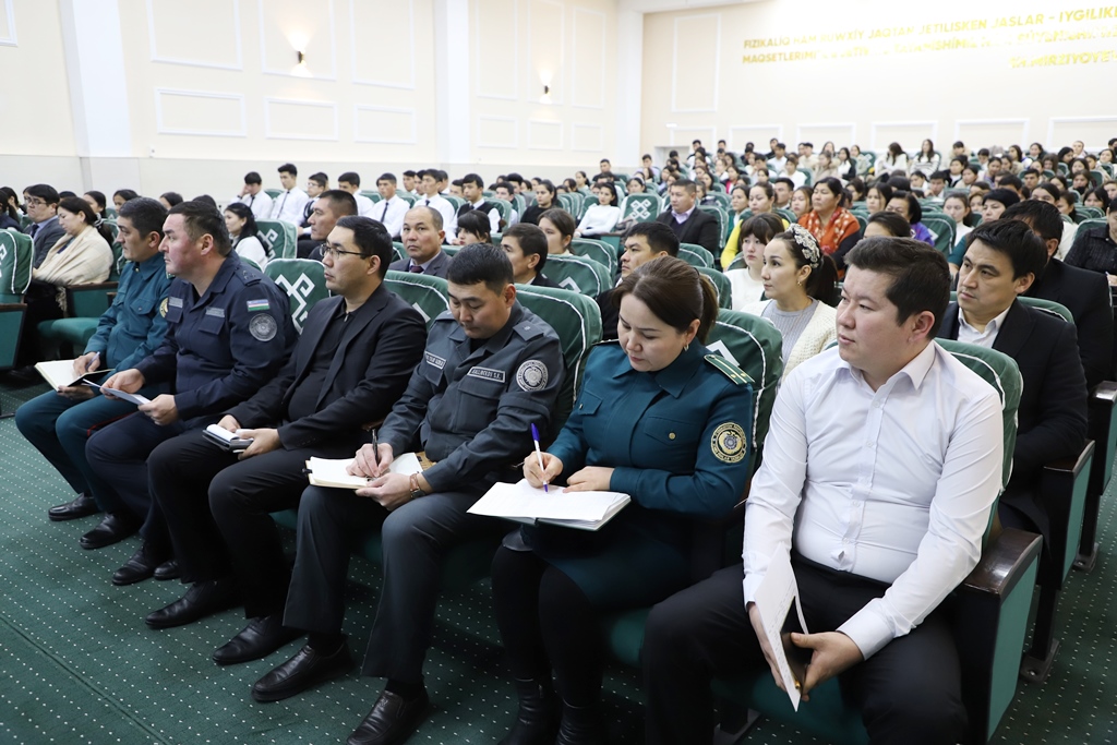 Ájiniyaz atındaǵı Nókis mámleketlik pedagogikalıq institutında Qaraqalpaqstan Respublikası Ishki isler ministri, polkovnik Baxtiyar Tórebekov qatnasıwında «Ministr hám jaslar» ushırasıwı bolıp ótti.