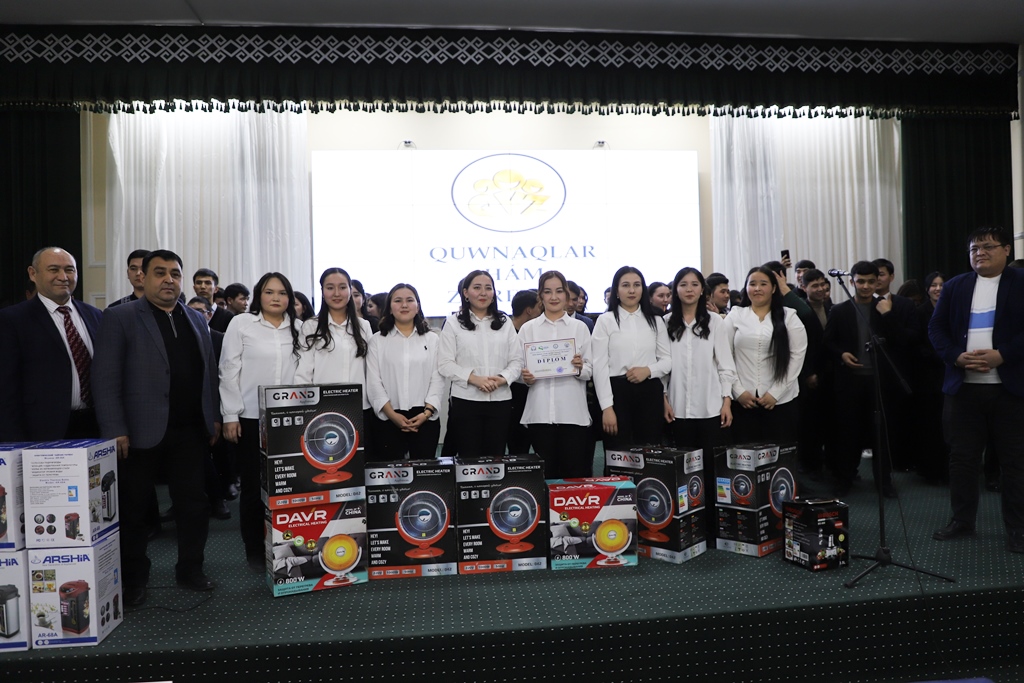 Ájiniyaz atındaǵı Nókis mámleketlik pedagogikalıq institutında studentlerdiń bos waqıtların mazmunlı ótkeriw, qábiletli, ziyrek jaslardı anıqlaw, olardıń ruwxıy dúnyasın bayıtıw hám talantlı jaslardı xoshametlew maqsetinde fakultetler arasında «Quwnaqlar hám ziyrekler» tańlawı ótkerildi.