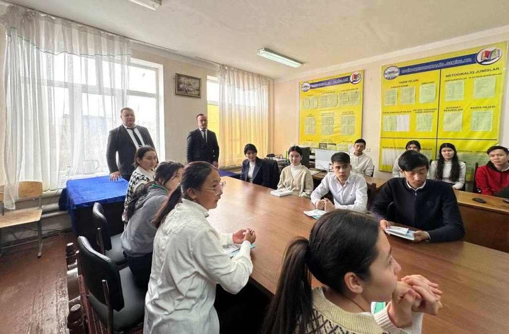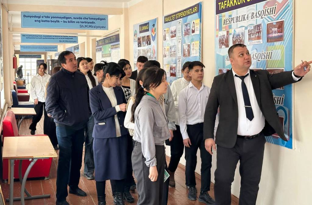 Ushırasıw barısında mektep oqıwshıları fakultette studentler ushın jaratılǵan sharayatlar menen tanıstı, fakultet hám milliy ideya, ruwxıylıq tiykarları hám huqıq tálimi kafedrası turmısı haqqında maǵlıwmatlar aldı. Dekan orınbasarı D.Reymov tárepinen studentlerdiń bos waqtın mazmunlı ótkeriwi ushın ámelge asırılıp atırǵan ilajlar tuwralı maǵlıwmatlar berildi.