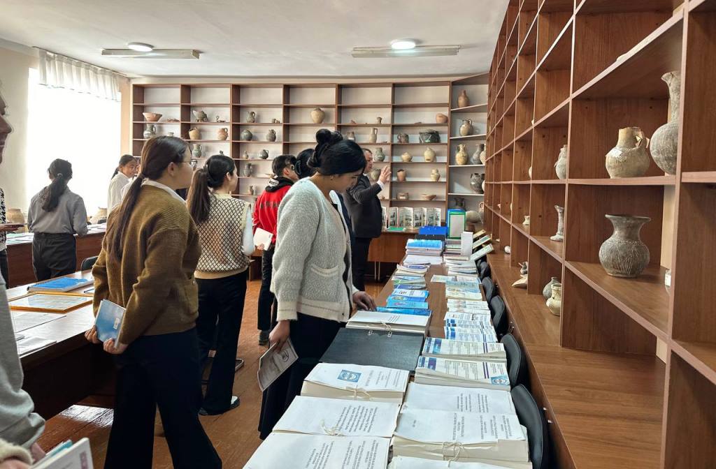 Ushırasıw baǵdarlaması sheńberinde mektep oqıwshıları fakultet qasında shólkemlestirilgen arxeologiyalıq muzey eksponatları menen tanıstı hám úlkemiz tariyxına baylanıslı ózlerin qızıqtırǵan sorawlarǵa juwap aldı.