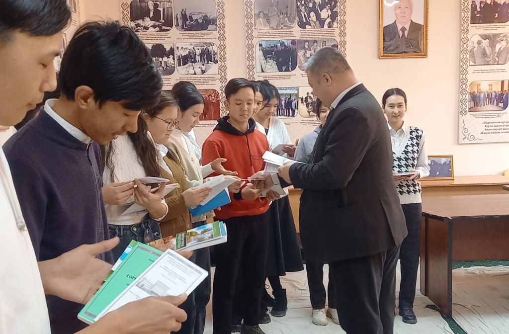 Ushırasıw barısında mektep oqıwshılarına akademik J.Bazarbaev hám kafedra professor-oqıtıwshıları tárepinen jazılǵan kitaplar sawǵa etildi.