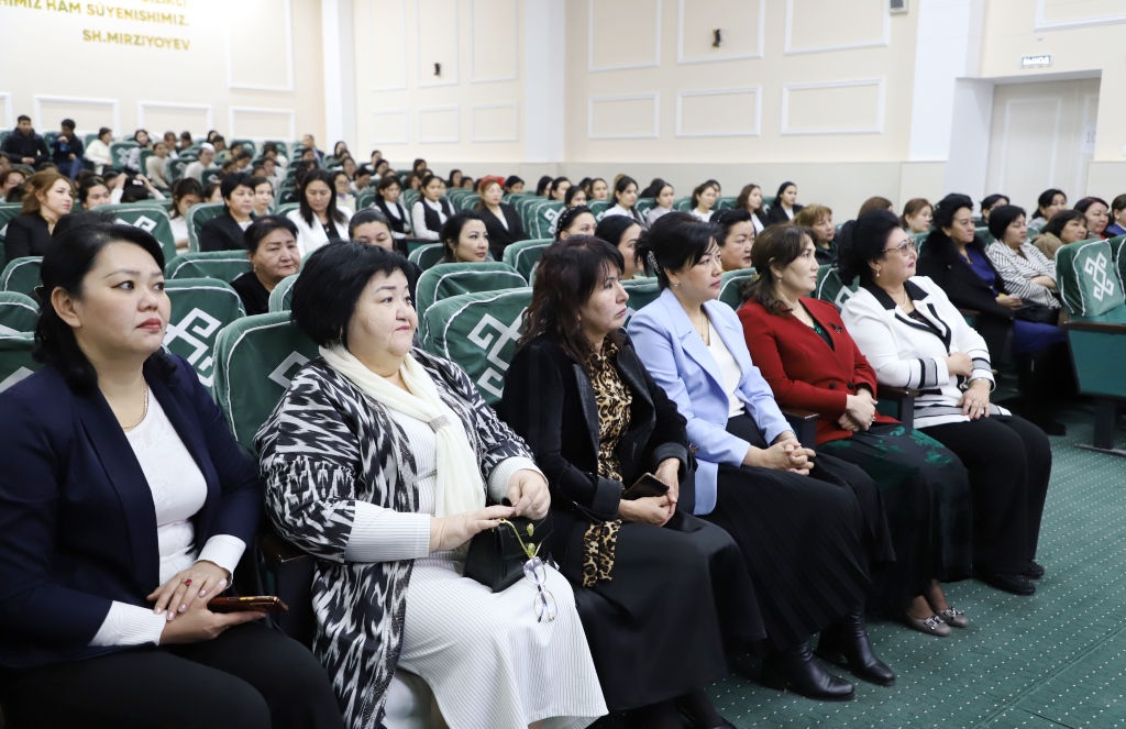 Ilajda institut rektorı wazıypasın waqıtsha atqarıwshısı Quvondiq Qodirov sózge shıǵıp, elimizde hayal-qızlardıń shańaraqtaǵı, jámiyettegi hám mámleketlik basqarıwdaǵı ornın bekkemlew, olardıń oqıwı, jumıs islewi ilimiy-izertlew hám isbilermenlik penen shuǵılanıwı ushın jaratılıp atırǵan imkaniyatlar haqqında aytıp ótti hám barlıq hayal-qızlardı bayram menen qutlıqladı.