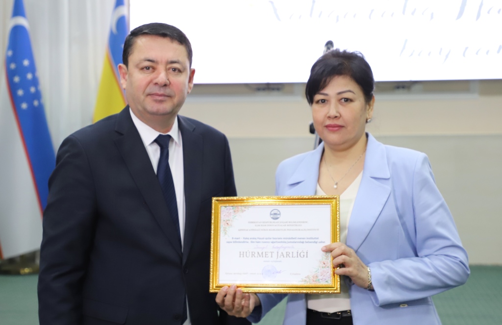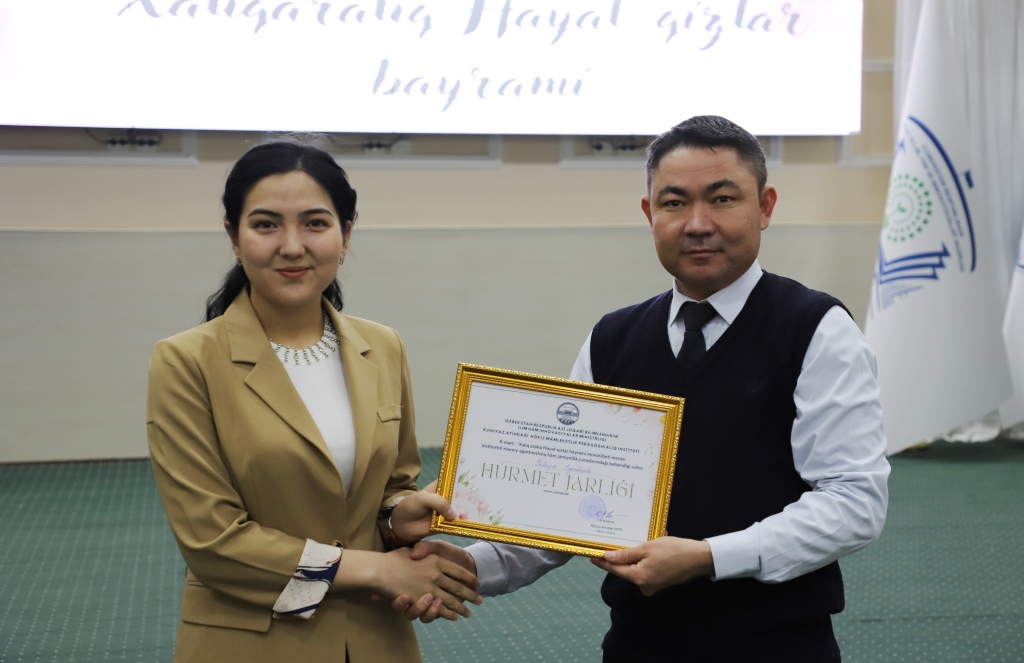 Bayram keshesinde tarawda kóp jıllardan berli pidayılıq penen nátiyjeli miynet etip atırǵan professor-oqıtıwshılar, qánige hayal-qızlar, sonıń menen birge, oqıwda hám jámiyetlik jumıslarda belsendilik kórsetip kiyatırǵan student qızlar institut rektoratı jáne kásiplik awqamı komiteti tárepinen húrmet jarlıqları, bayram sawǵaları menen sıylıqlandı.