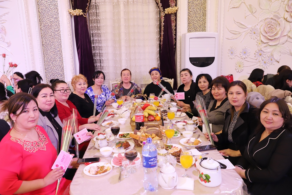 Hayal-qızlar instituttıń kásiplik awqamı komiteti tárepinen shólkemlestirilgen bayram dasturqanına mirát etilip, olarǵa gúller sawǵa etildi.