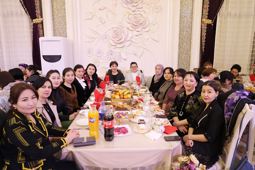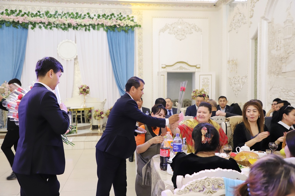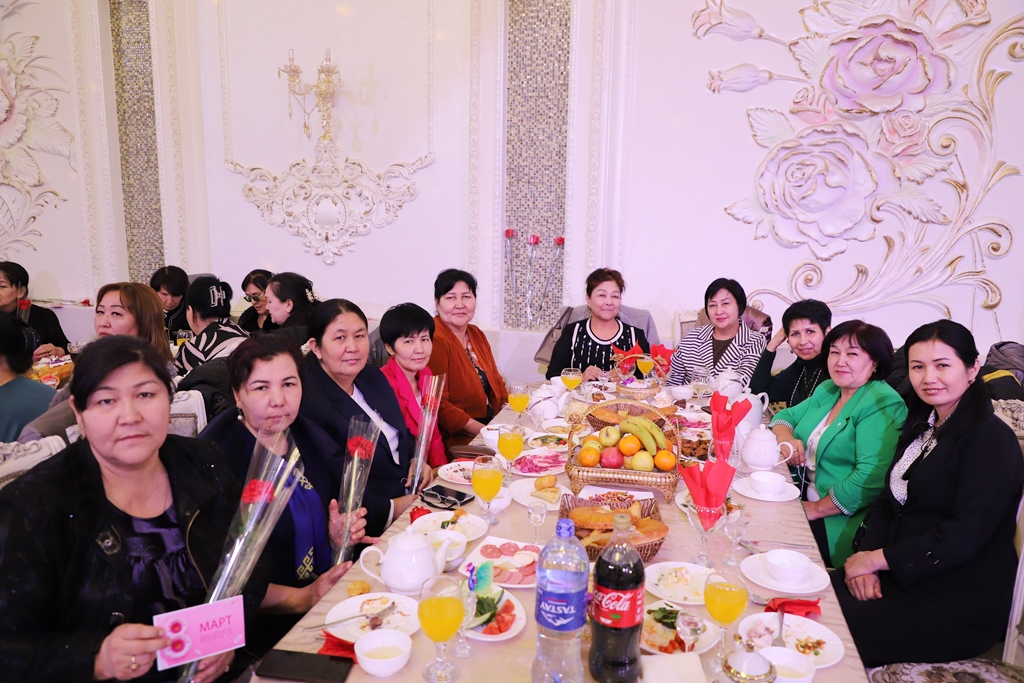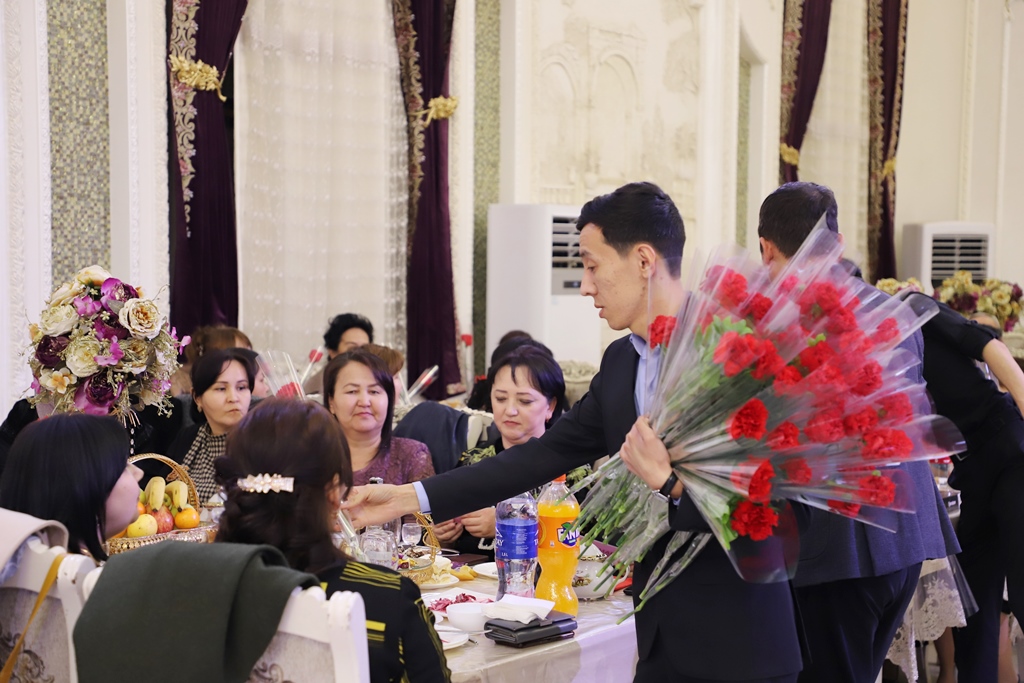 Hayal-qızlar instituttıń kásiplik awqamı komiteti tárepinen shólkemlestirilgen bayram dasturqanına mirát etilip, olarǵa gúller sawǵa etildi.