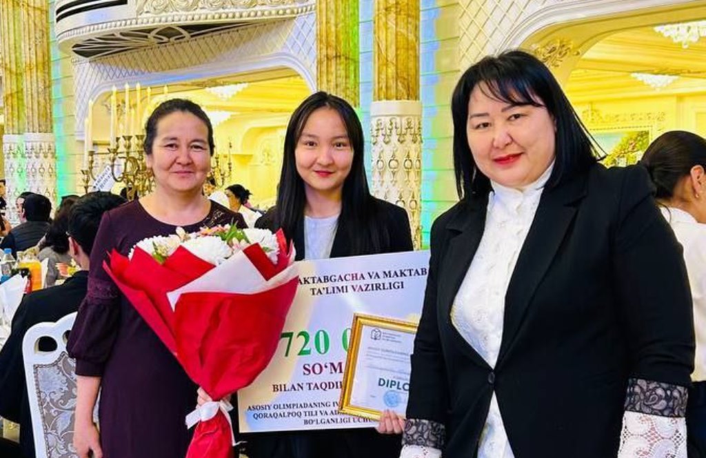 Pánler olimpiadasınıń respublikalıq basqıshında jeńimpaz bolǵan liceyimiz oqıwshısına Mektepke shekemgi hám mektep bilimlendiriwi ministrligi tárepinen diplom, pul sıylıǵı hám qımbat bahalı estelik sawǵaları saltanatlı túrde tapsırıldı.