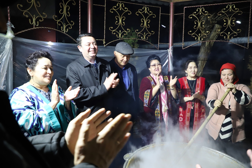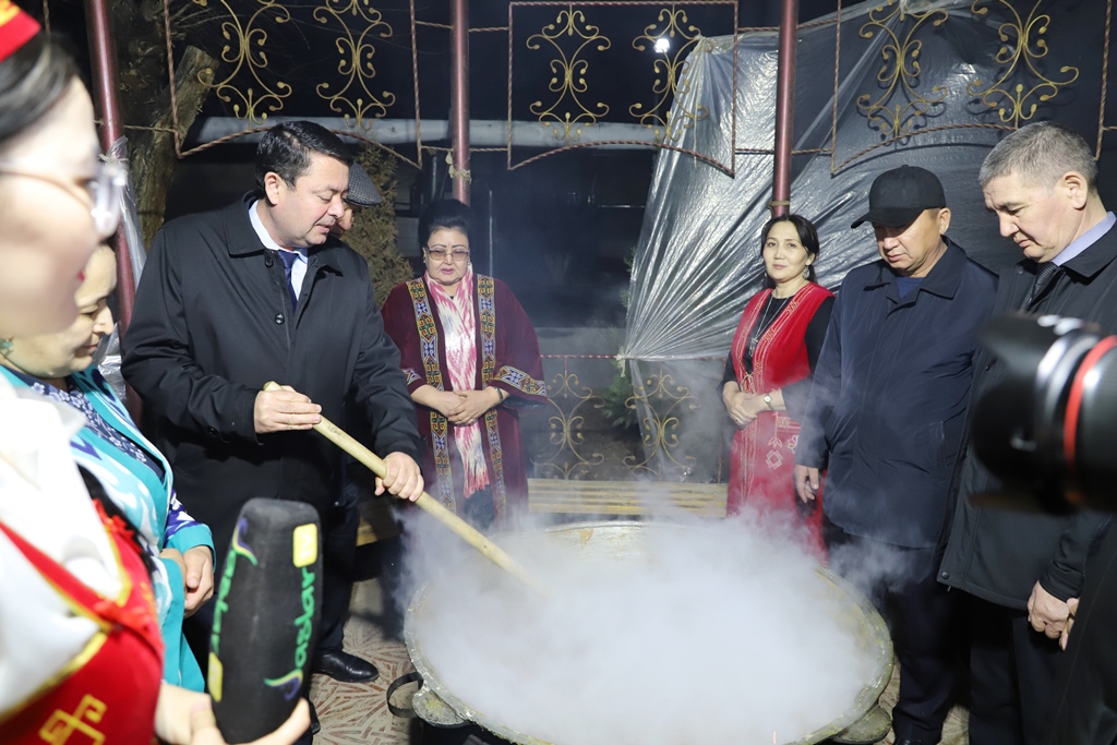 Seyilde úlken qazanda Nawrız taǵamı bolǵan súmelek qaynatılıp, qazan átirapında bayram ilajları shólkemlestirildi.