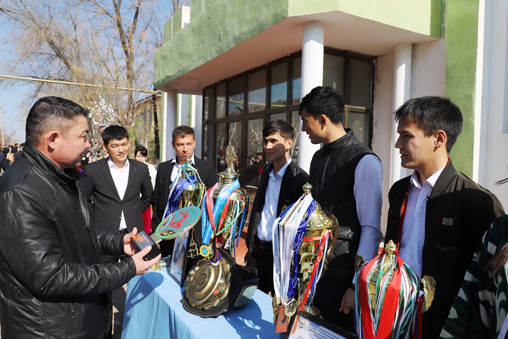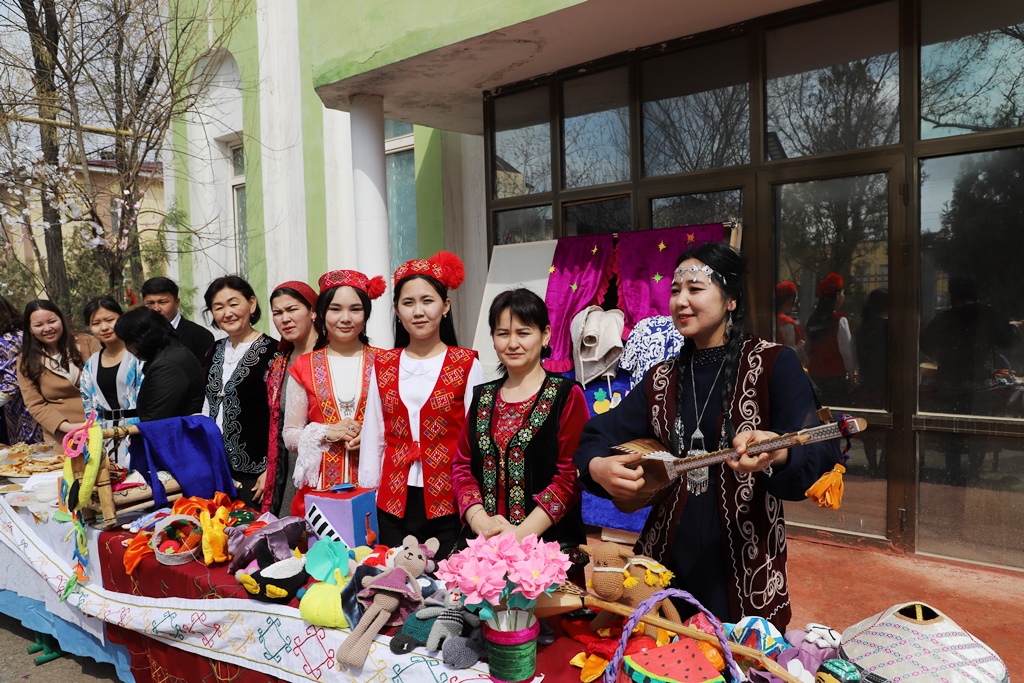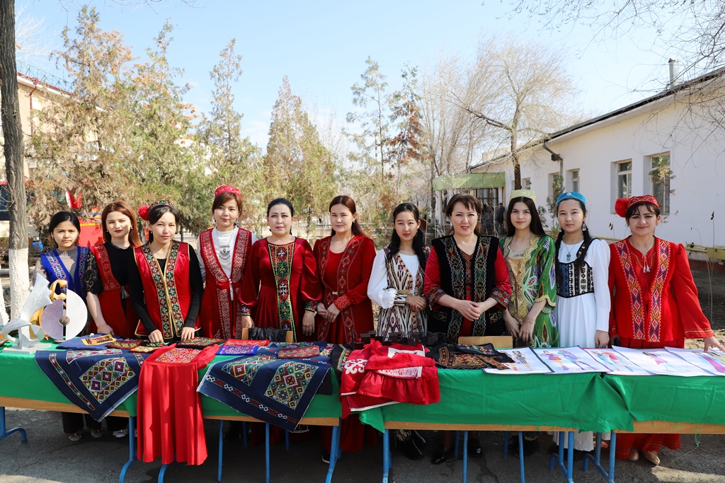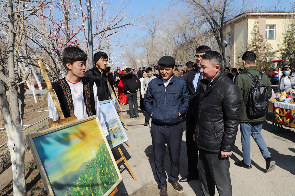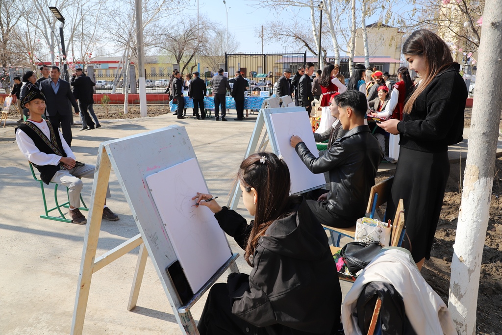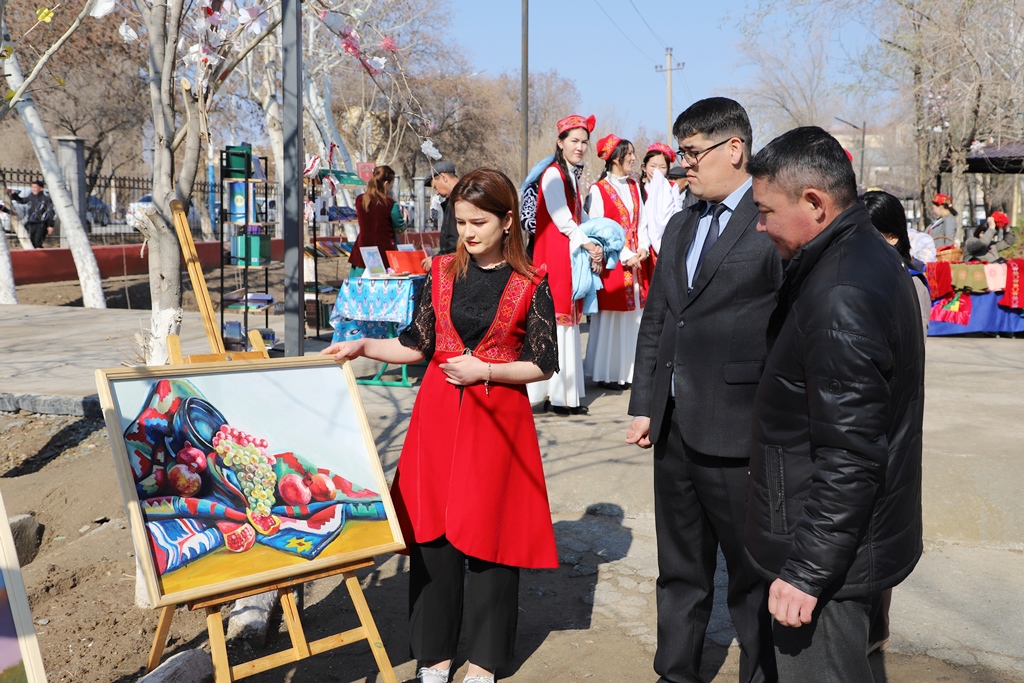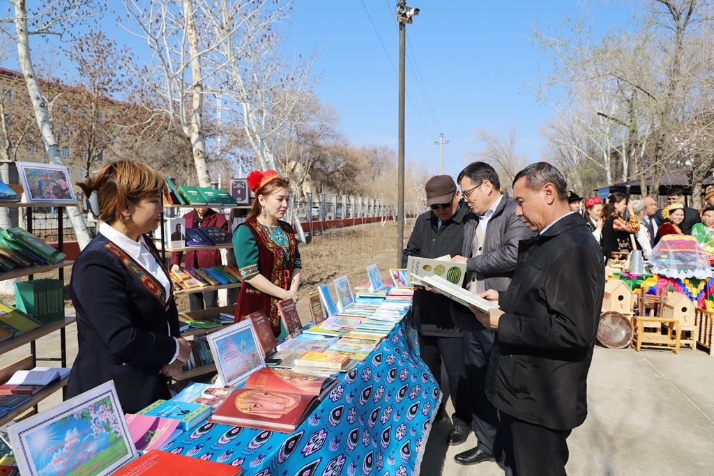 Bayram múnásibeti menen institut studentleriniń qol óneri úlgileri, súwretlew óneri, qolǵa kirgizgen tabısları sáwlelengen kórgizbeleri, kitaplar yarmarkası bolıp ótti.