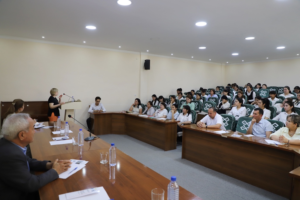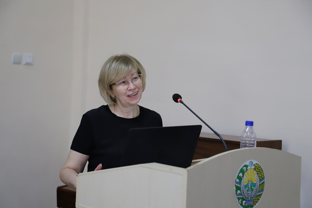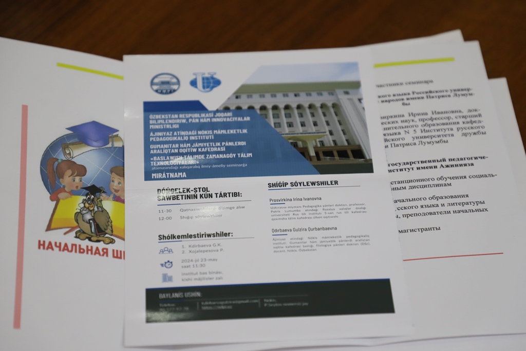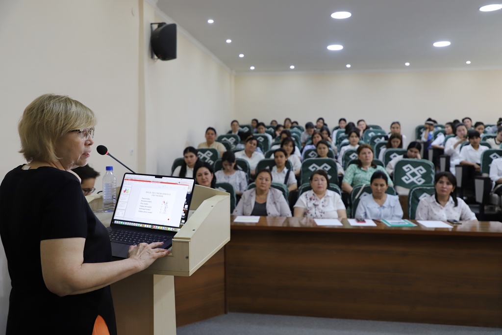 Ilajda rossiyalı professor baslawısh tálimniń zamanagóy áhmiyetli mashqalaları, bilimlendiriwdi sanlastırıw sharayatında bolajaq baslawısh klass muǵallimlerin kóp mádeniyatlı bilimlendiriw ortalıǵındaǵı jumıs procesine tayarlaw boyınsha prezentaciyasın qatnasıwshılar názerine usındı.
