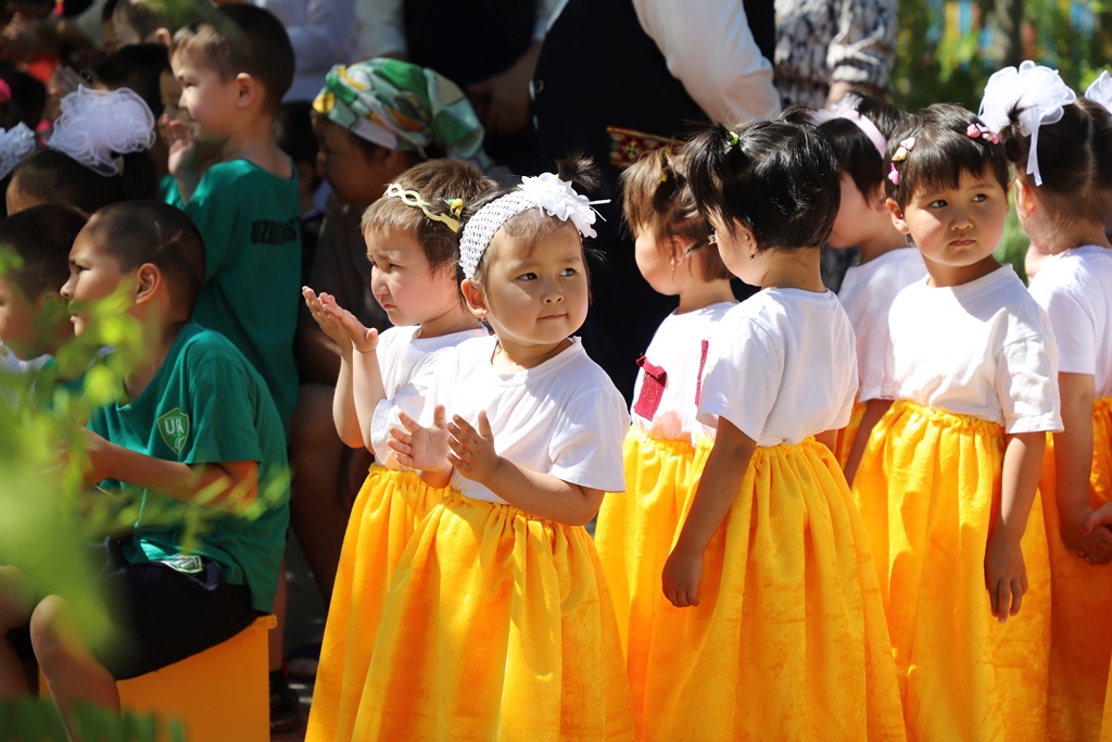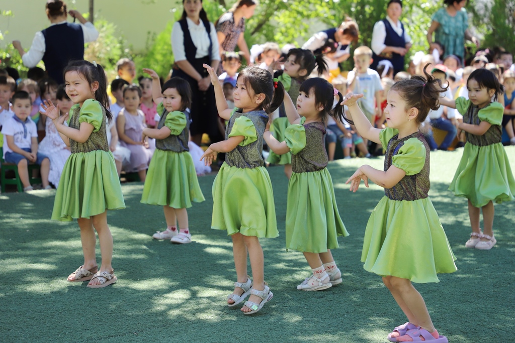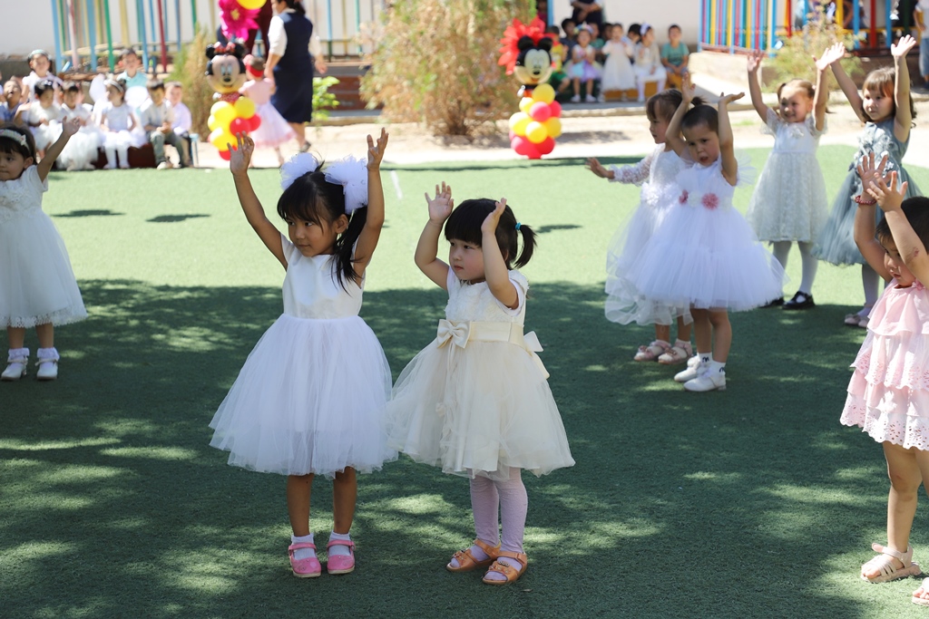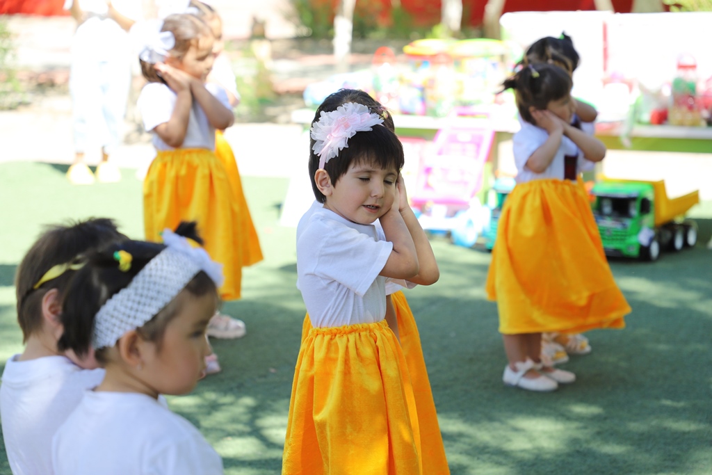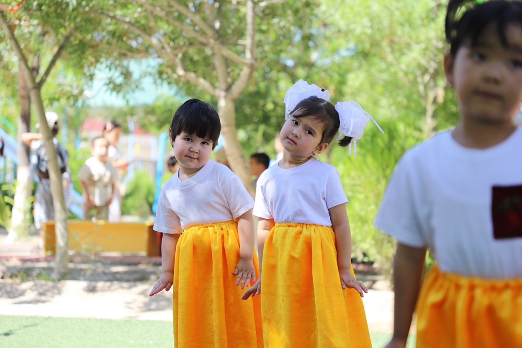 Balalar tárbiyashıları menen birgelikte hár qıylı qosıqlar, ayaq-oyınlar atqarıp, bayramdı kóterińki ruwxta belgiledi.