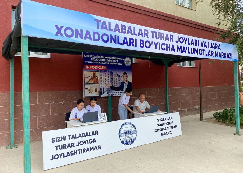 Studentlerdi turaq jay menen támiyinlewde náwbetlerdiń aldın alıw, oqıw jılı baslanıwı qarsańında studentlerdiń turaq jaysız qalıwı jaǵdayların boldırmaw maqsetinde Ájiniyaz atındaǵı Nókis mámleketlik pedagogikalıq institutında 4 orında arnawlı oraylardıń jumısları jolǵa qoyıldı.