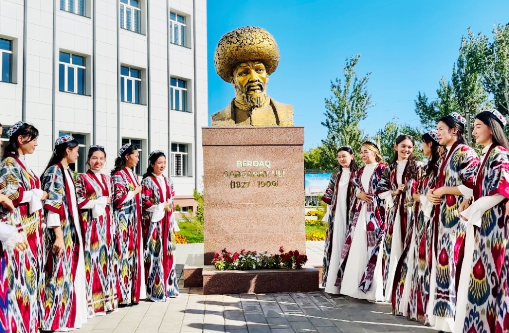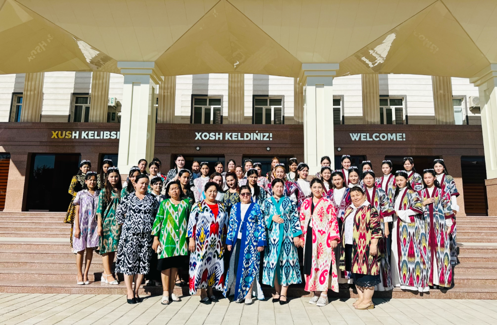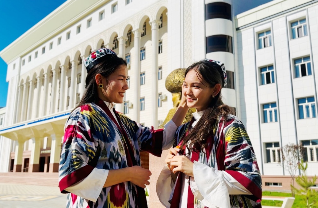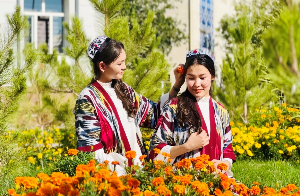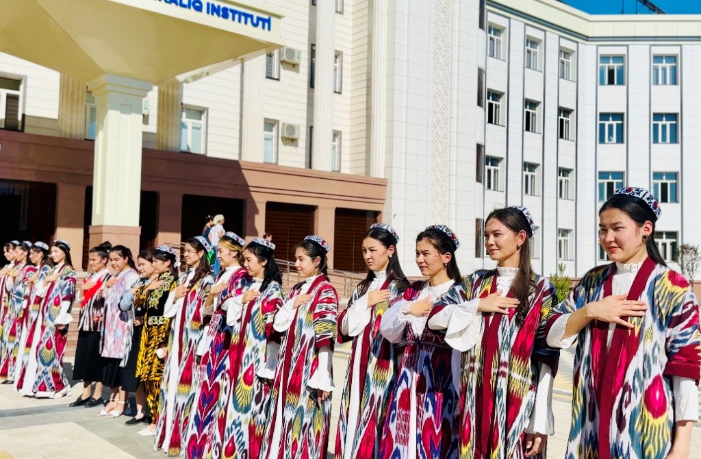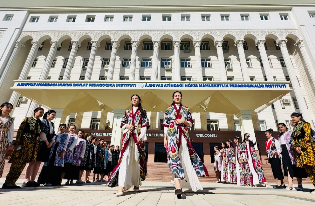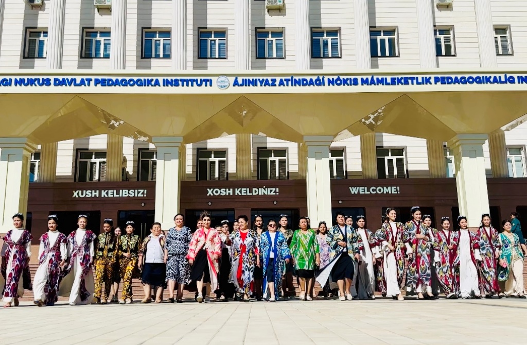Chellendj dawamında professor-oqıtıwshılar, tyutorlar hám student-qızlar milliy kiyimlerde fotosúwretlerge túsip, milliy qádiriyatlarǵa húrmet kórsetpekte.