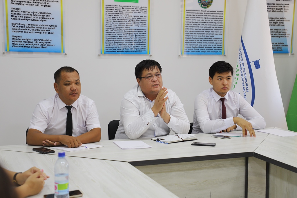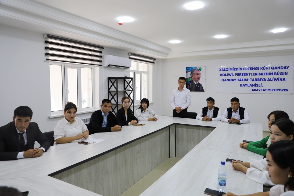 Instituttıń jaslar menen islesiw, ruwxıylıq hám aǵartıwshılıq bólimi baslıǵı B.Bekmuratov, jaslar awqamı baslanǵısh shólkemi jetekshisi B.Gúlimbetov hám metodist E.Qasımov talabanlardıń pikir-usınısları, baslamaların tıńlap, óz másláhátlerin berdi.