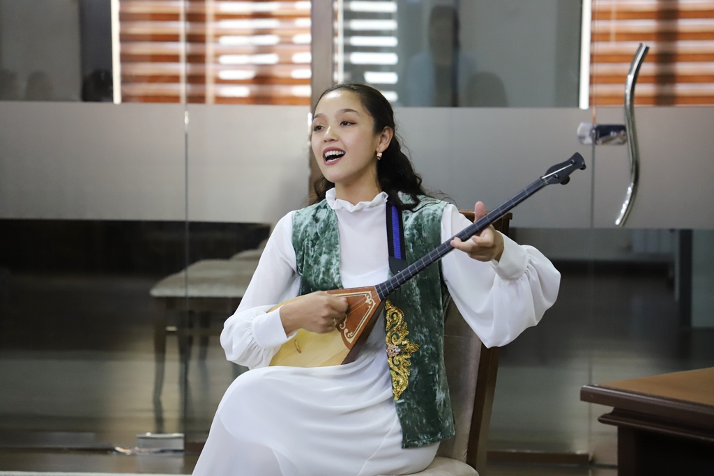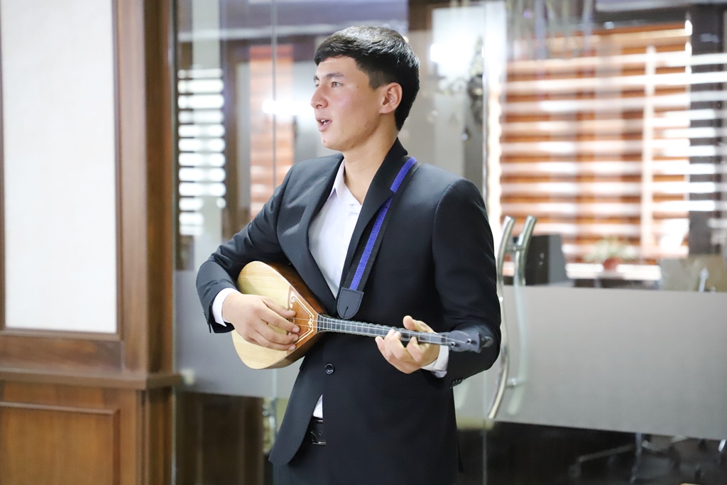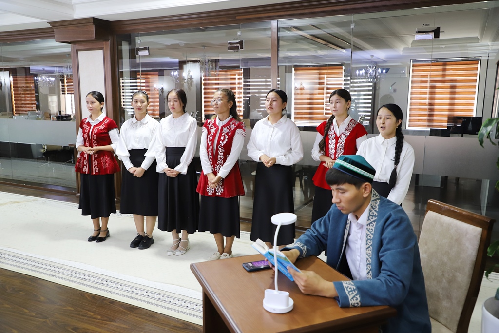 Keshe instituttıń qazaq tili hám ádebiyatı tálim baǵdarınıń studentleri tárepinen shólkemlestirilgen ádebiy bólim menen dawam etti. Onda túrkmen tili hám ádebiyatı, sonday-aq, muzıkalıq tálim baǵdarlarınıń studentleri de qatnasıp, óz ónerlerin kórsetti.