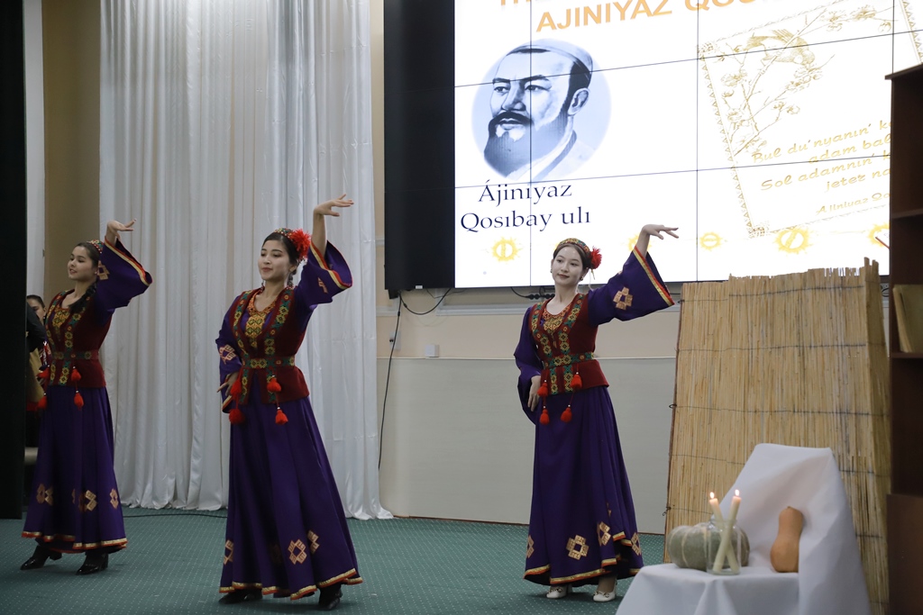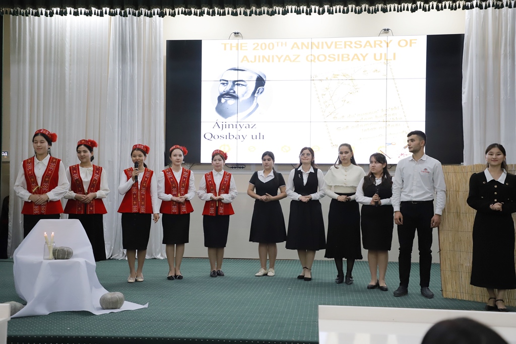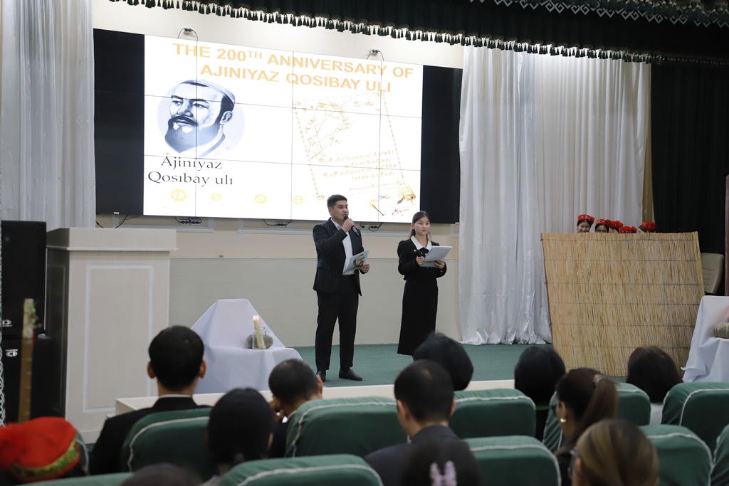 Ájiniyaz atındaǵı Nókis mámleketlik pedagogikalıq institutı Shet tilleri fakulteti inglis tili hám ádebiyatı kafedrasınıń baslaması menen XIX ásir qaraqalpaq ádebiyatınıń kórnekli wákili Ájiniyaz Qosıbay ulınıń tuwılǵanına 200 jıl tolıwına arnalǵan «Ayt sen Ájiniyazdıń qosıqlarınan» atamasındaǵı ádebiy keshe shólkemlestirildi.