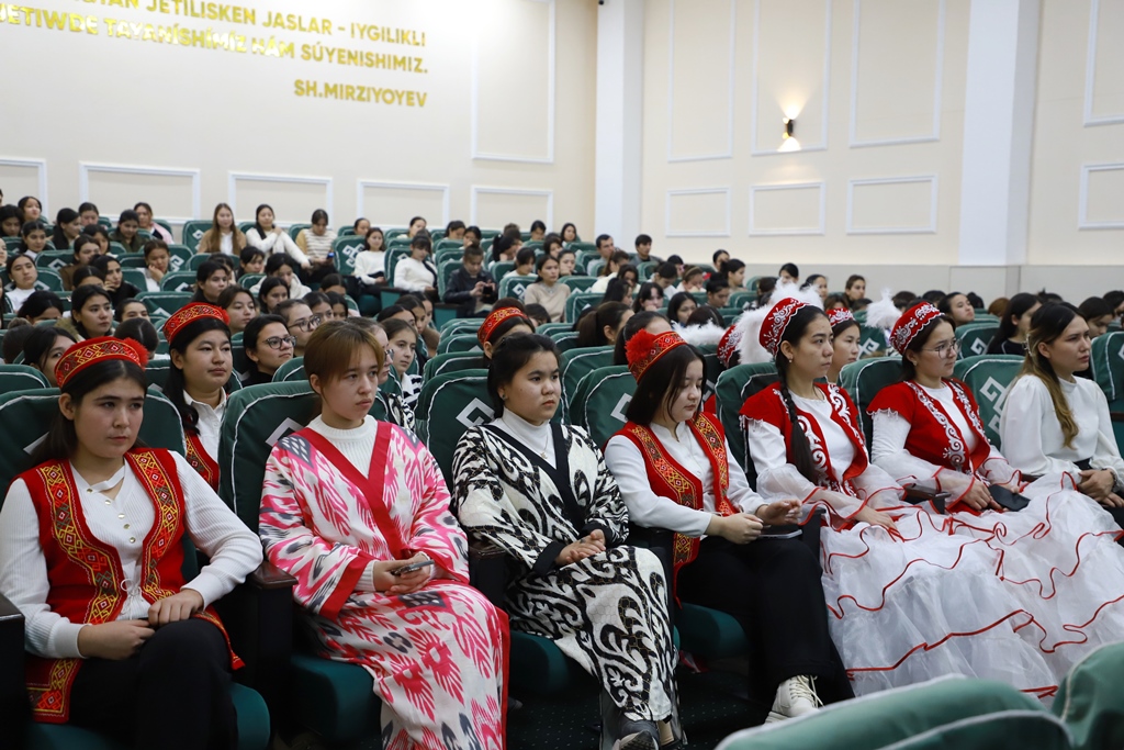 Ilaj instituttıń qábiletli studentleri tárepinen shólkemlestirilgen saxnalıq kórinisler hám «Tumaris» xalıq ansambli aǵzaları atqarıwındaǵı koncert baǵdarlaması menen dawam etti.