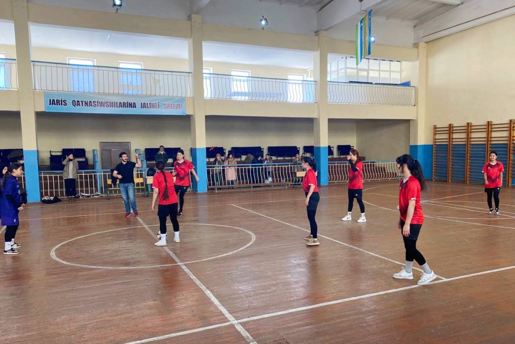 Ájiniyaz atındaǵı Nókis mámleketlik pedagogikalıq institutı sport sarayında «English Sport Club» sheńberinde Úrgenish mámleketlik universitetiniń student-qızları menen mini futbol boyınsha jarıs shólkemlestirildi.