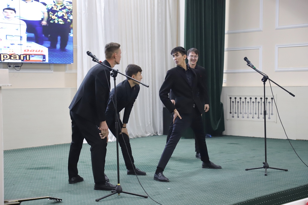 Pedagogika fakultetiniń «Dembermes» hám Baslawısh tálim fakultetiniń «Baslawıshtıń juldızları» komandaları «Institut 90 jasta!» atamasındaǵı shárt tiykarında yumor-satiraǵa bay saxnalıq kórinislerin tamashagóyler názerine usındı.