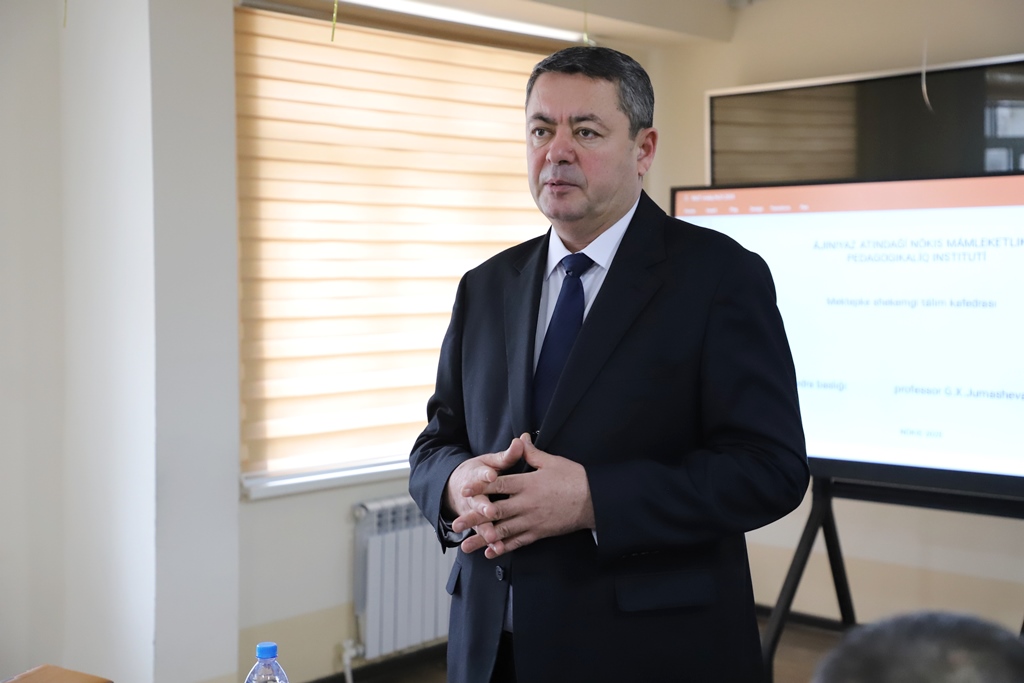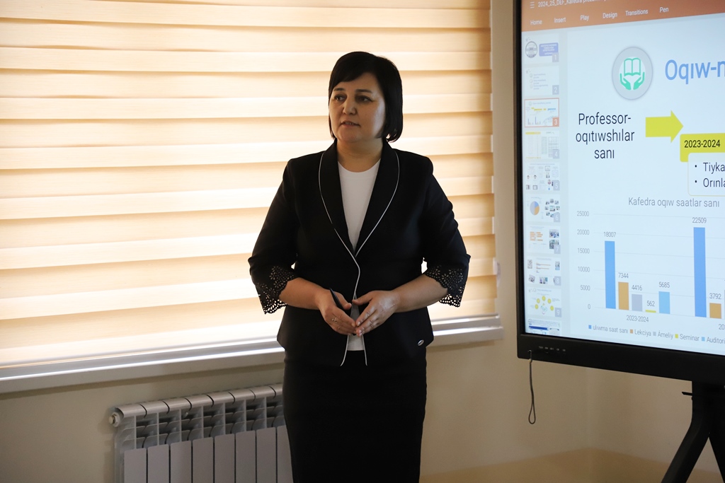 Búgin, 7-yanvar kúni Ájiniyaz atındaǵı Nókis mámleketlik pedagogikalıq institutı Baslawısh tálim hám Mektepke shekemgi tálim fakultetlerinde bolıp ótken prezentaciyalarda ótken 2024-jıl dawamında oqıw-tárbiyalıq hám ilimiy-pedagogikalıq baǵdarda islengen jumıslardıń nátiyjeleri menen birge 2025-jıldıń jol kartasında belgilengen wazıypalar keń túrde dodalandı.