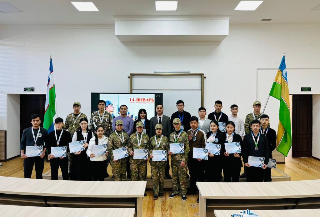 Jaslardı watan súyiwshilik ruwxında tárbiyalaw, olardıń fizikalıq hám áskeriy tayarlıqların sınaqtan ótkeriw maqsetinde shólkemlestirilgen jarısta studentler komandalarǵa bólingen halda óz komandasın tanıstırıw hám áskeriy qosıq aytıw, 100 metr aralıqqa juwırıw, qollardı búgip-jazdırıw, áskeriy shenlerdi izbe-izlikte aytıw sıyaqlı shártler tiykarında óz ara bellesti.