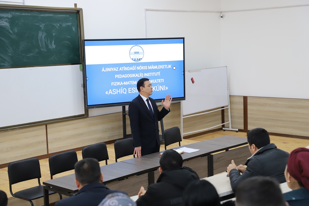 Fizika-matematika fakultetinde ótkerilgen usınday ilajda rektorat wákilleri, fakultet dekanı hám tiyisli juwapkerler institutta jaslardıń oqıwı, bilim alıwı, alıs aymaqlardan kelgen studentler ushın turaq jay menen támiyinlew, olardıń qábiletlerin júzege shıǵarıw, bos waqıtların mazmunlı ótkeriw ushın jaratılǵan sharayatlar, «4+2» formatındaǵı ámeliyat barısı, oqıw procesinde korrupciyalıq jaǵdaylardıń aldın alıw boyınsha ámelge asırılıp atırǵan jumıslar tuwralı keń túrde maǵlıwmatlar berildi.