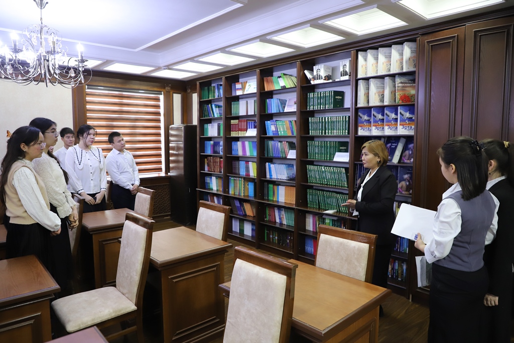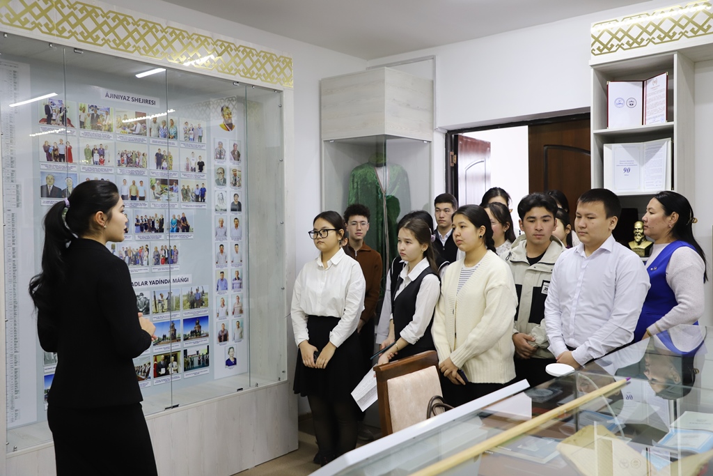 Oqıwshılar dáslep institutta Prezidentimizdiń qararı tiykarında qaraqalpaq klassikalıq ádebiyatınıń kórnekli wákili Ájiniyaz Qosıbay ulınıń 200 jıllıǵı múnásibeti menen shólkemlestirilgen Ájiniyaz muzeyinde bolıp, bul jerdegi eksponatlar, olardıń tariyxı, shayırdıń ómiri hám dóretiwshiligi, sonday-aq, instituttıń 90 jıllıq tariyxı haqqında bahalı maǵlıwmatlarǵa iye boldı.