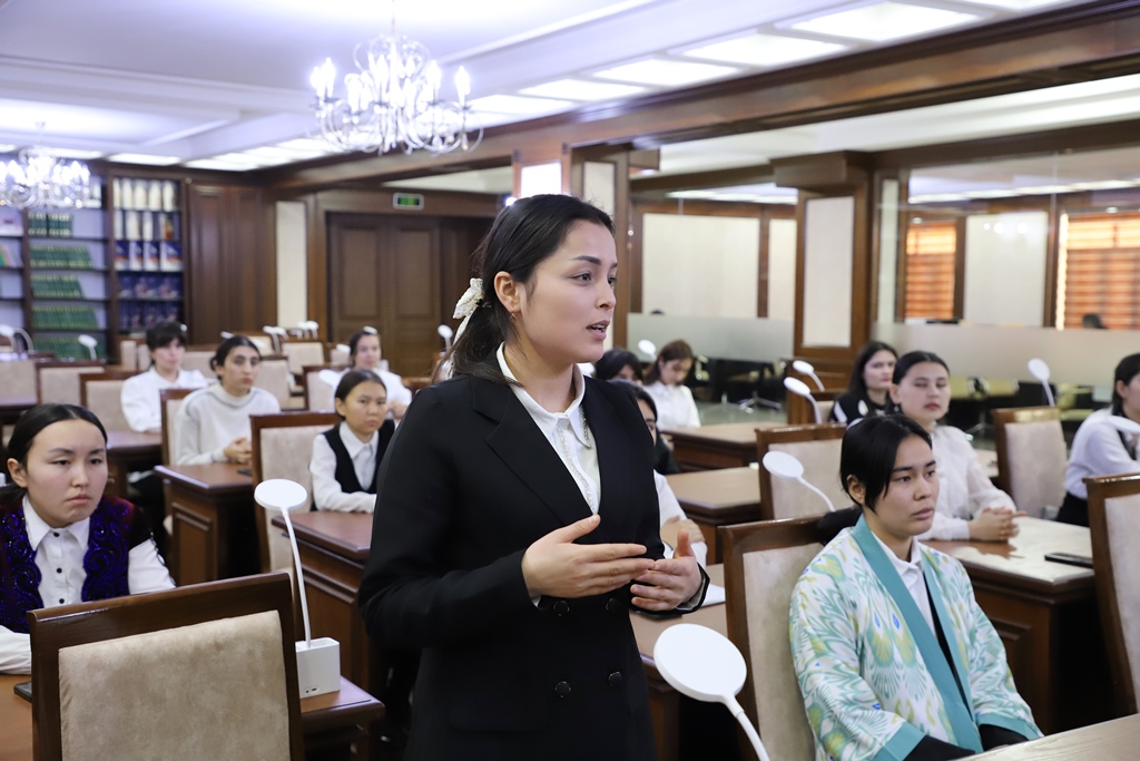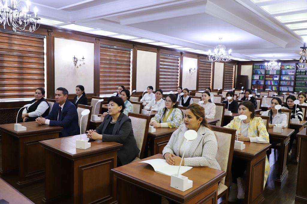 Keshege málimleme-resurs orayınıń direktorı Gúlayım Jiyemuratova, ózbek ádebiyatı kafedrasınıń oqıtıwshısı Yorqinoy Madrimova, sırt el málimleme-kitapxana resursları menen islesiw bóliminiń baslıǵı Rita Amanbaeva, Mektepke shekemgi tálim fakultetiniń tyutorı Gúljáhán Artikova hám basqa tyutorlar, student-jaslar qatnastı.