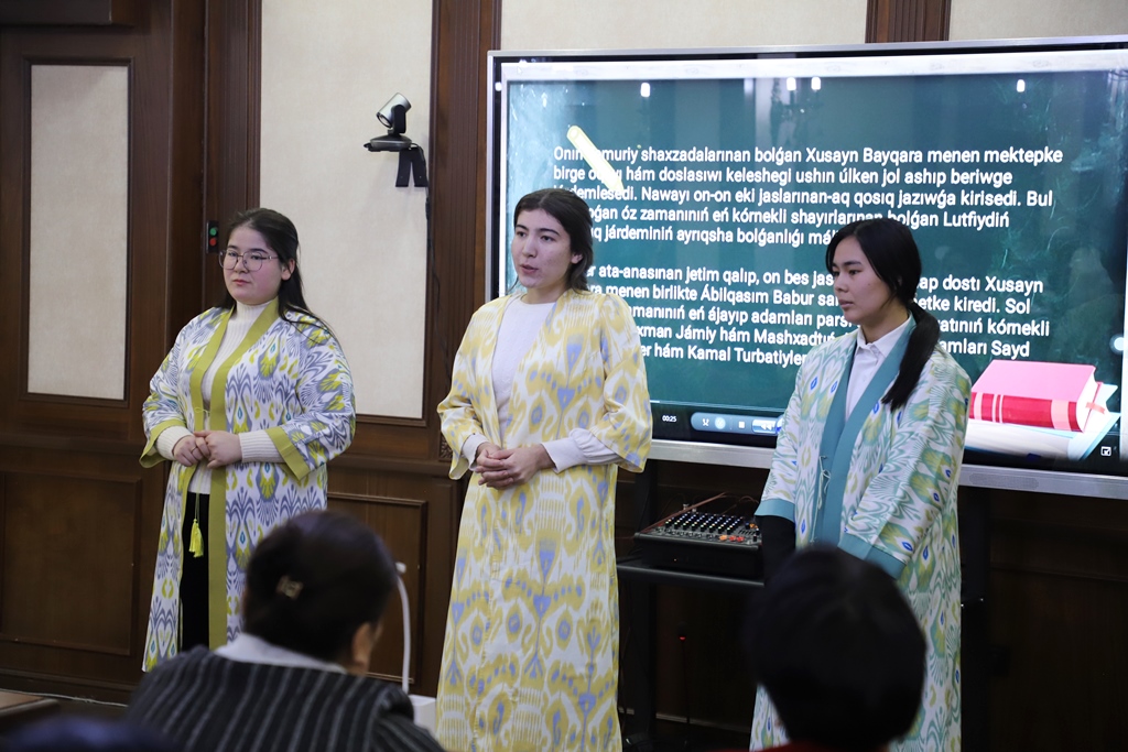 Búgin, 7-fevral kúni Ájiniyaz atındaǵı Nókis mámleketlik pedagogikalıq institutı málimleme-resurs orayında sırt el málimleme-kitapxana resursları menen islesiw bólimi tárepinen túrkiy xalıqlar ádebiyatınıń kórnekli wákili, ózbek ádebiy tiliniń tiykarın salıwshısı, shayır hám mámleketlik ǵayratker, ǵázzel múlkiniń sultanı Áliysher Nawayınıń tuwılǵanına 584 jıl tolıwı múnásibeti menen «Babamız – maqtanıshımız» atamasındaǵı ádebiy keshe shólkemlestirildi.