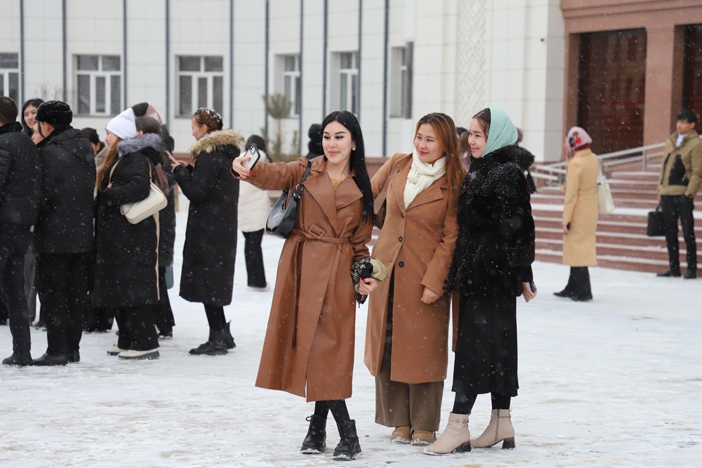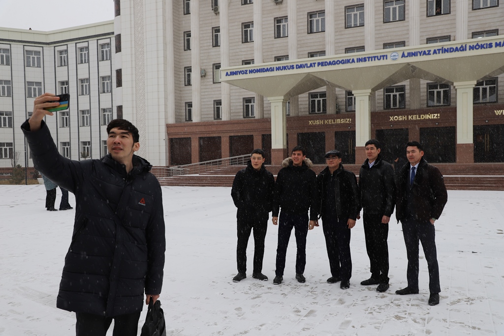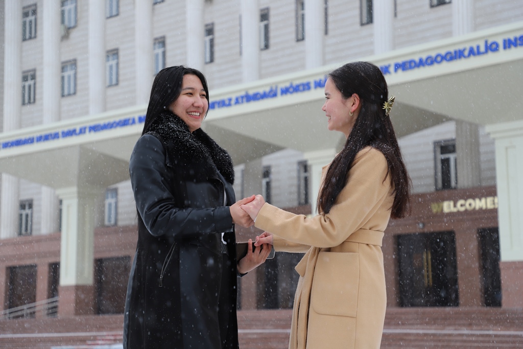 Qıstıń ózgeshe kórki, tábiyattıń ájayıp gózzallıǵı Ájiniyaz atındaǵı Nókis mámleketlik pedagogikalıq institutınıń studentlerin de ózgeshe quwanıshqa bólep, kewillerge páklik baǵıshlamaqta.