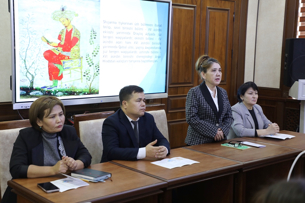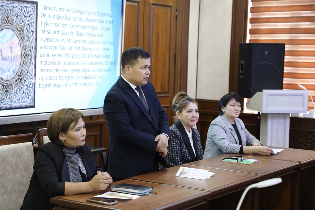 Onıń 1494-1529-jıllardaǵı waqıyalardı óz ishine alǵan tariyxıy-memuarlıq shıǵarması «Baburnama» hám onıń mazmunı, áhmiyeti tuwralı pikir almasıldı.
