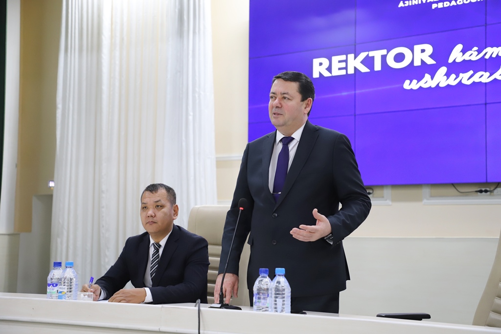 Ájiniyaz atındaǵı Nókis mámleketlik pedagogikalıq institutı rektorı Quvondiq Qodirov «Rektor hám jaslar» ushırasıwı sheńberinde instituttıń Tariyx fakulteti studentleri menen ashıq sáwbetlesiw ótkerdi.