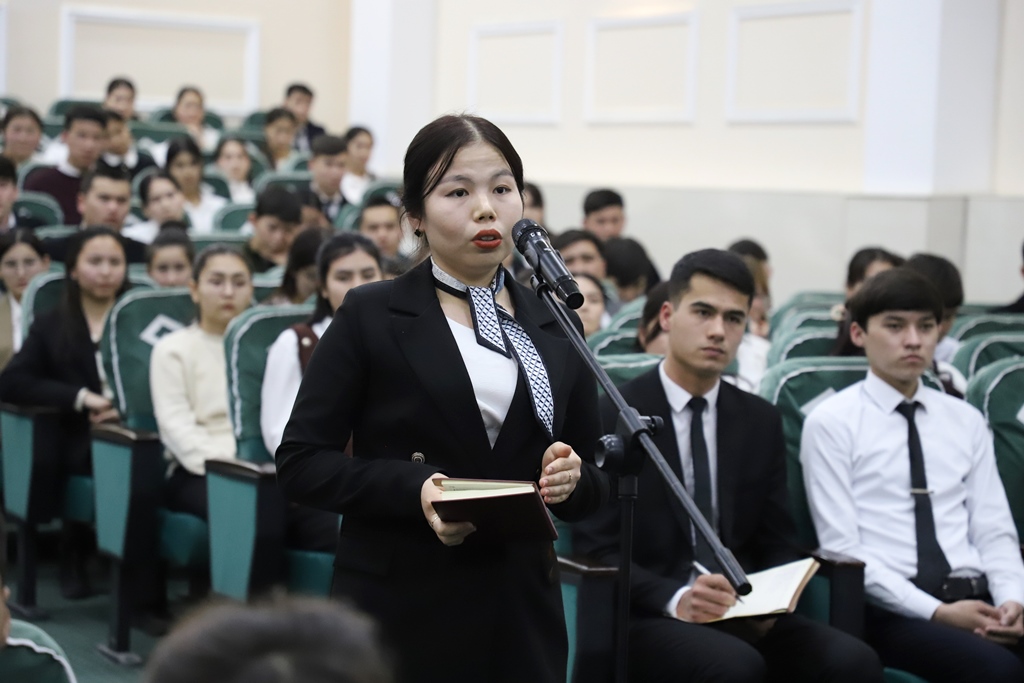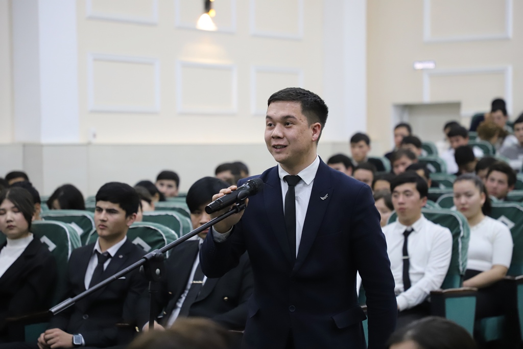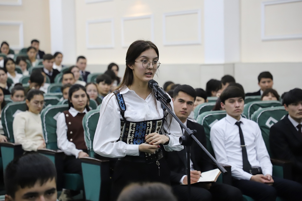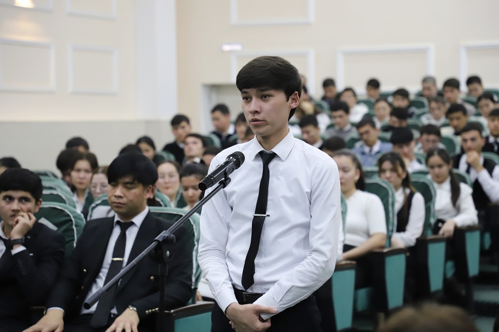 Sonıń menen birge, instituttı hár tárepleme rawajlandırıw maqsetinde islep shıǵılǵan jol kartasınıń tiykarǵı bántlerin jaslardıń pikir-usınısları tiykarında qáliplestiriw maqsetinde usı formattaǵı ushırasıwlardı barlıq fakultetler kesiminde ótkerip atırǵanın aytıp ótip, jaslardıń bul baǵdardaǵı baslamaların tıńlaw hám qollap-quwatlawǵa tayar ekenligin bildirdi.