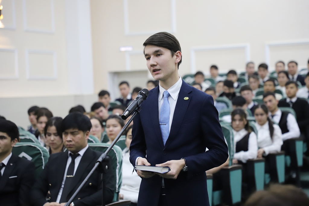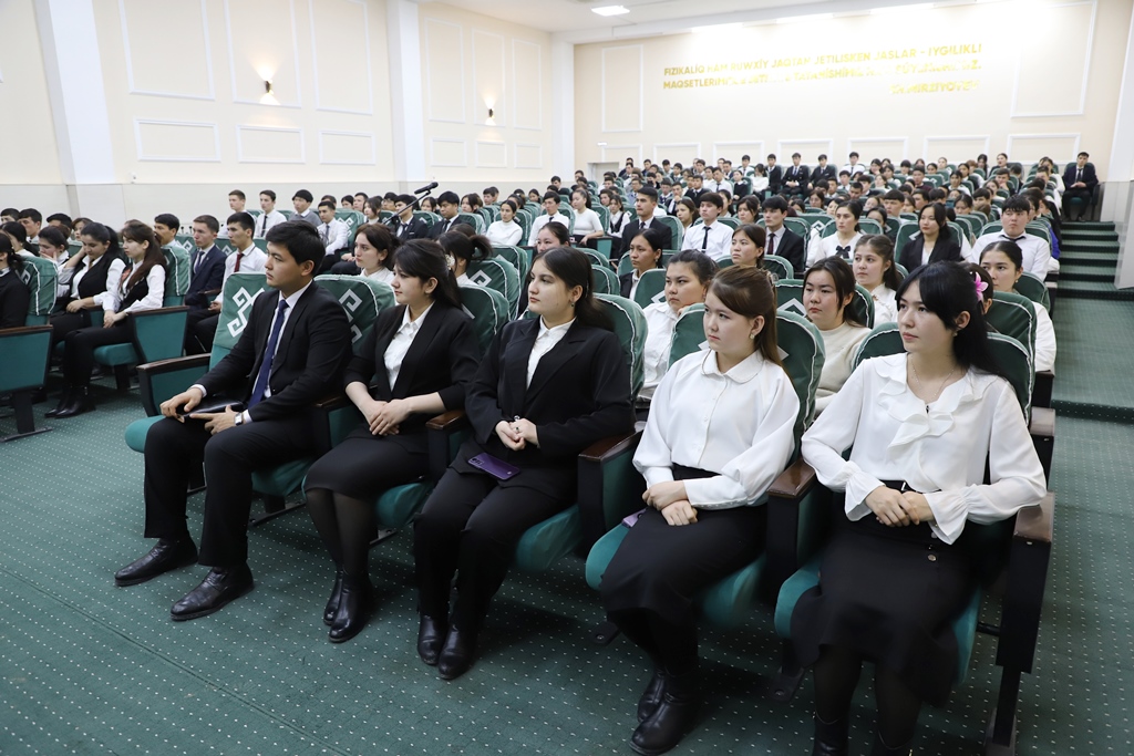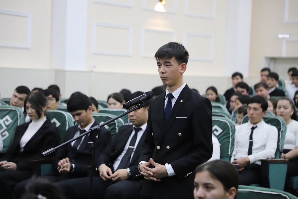 Rektor dáslep mámleketimizde jaslardıń bilim alıwı, kásip-óner úyreniwi hám óz qábiletlerin júzege shıǵarıwı ushın jaratılıp atırǵan sharayatlar, usınday imkaniyatlardan nátiyjeli paydalanıp atırǵan jaslardıń qolǵa kirgizip atırǵan tabısları haqqında aytıp ótip, 90 jıllıq tariyxına iye bolǵan institutta jaslardıń tálim-tárbiyası, olarǵa qosımsha qolaylıqlar jaratıw baǵdarındaǵı orınlanıp atırǵan jumıslar haqqında maǵlıwmat berdi.