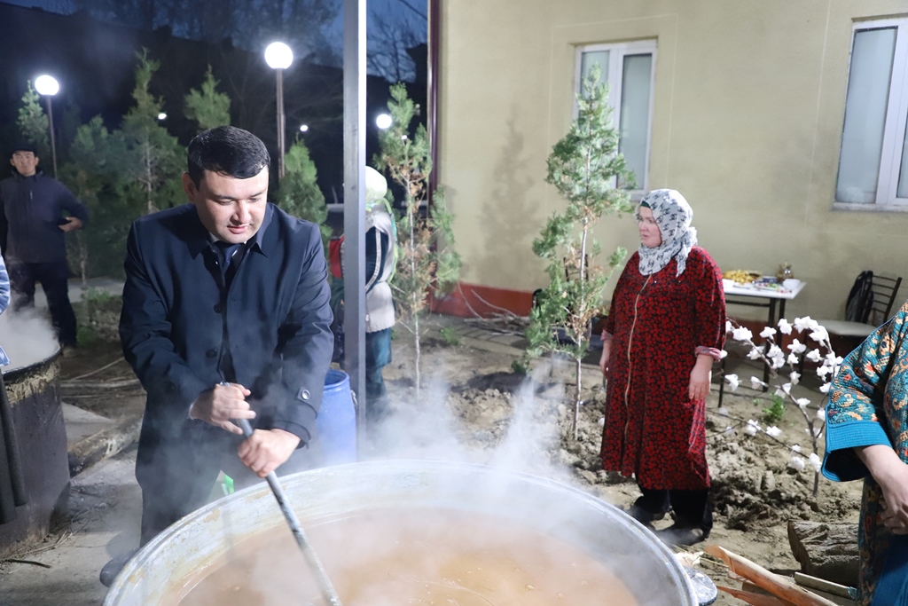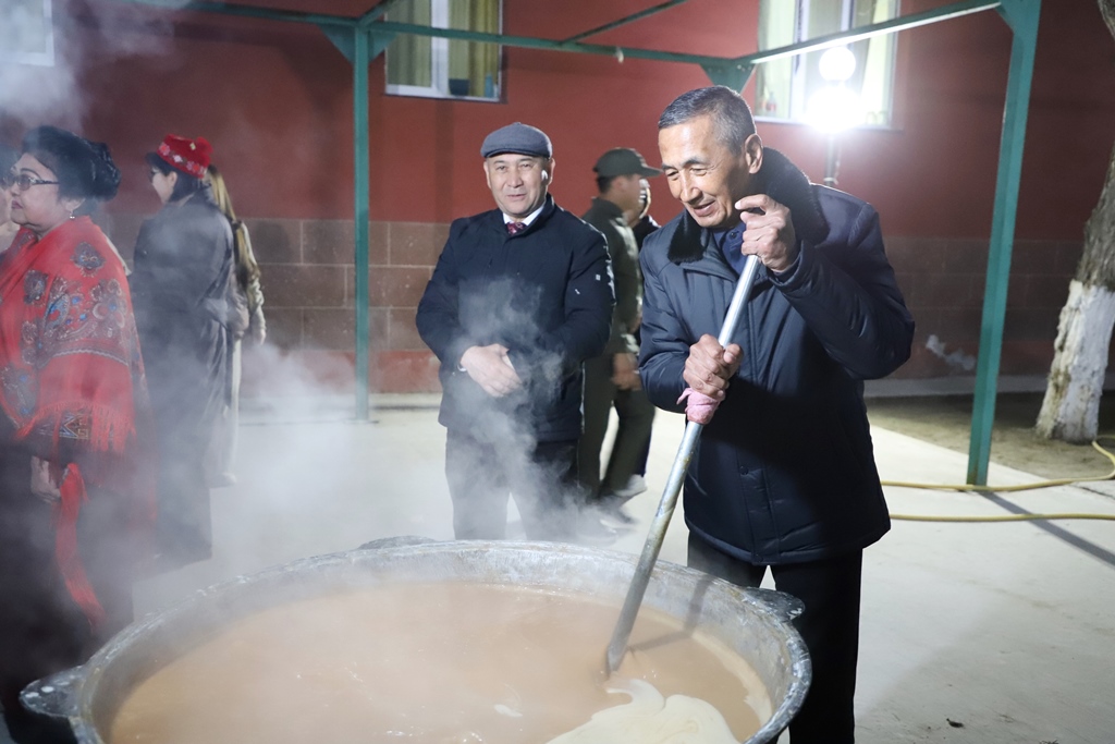 Úlken qazanlarda qaynatılıp atırǵan bayram taǵamı – súmelek bılǵap, shólkemlestiriwshilerge minnetdarshılıq bildirdi.