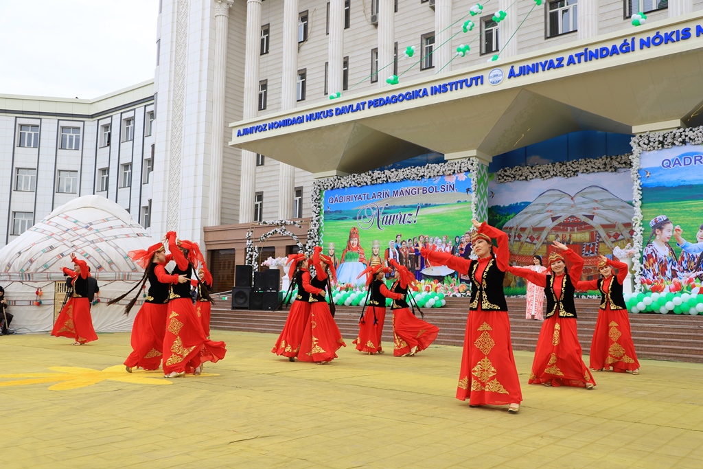 Usı jıldıń 28-mart kúni Ájiniyaz atındaǵı Nókis mámleketlik pedagogikalıq institutında Nawrız ulıwma xalıqlıq bayramına baǵıshlanǵan «Qádiriyatlarıń máńgi bolsın, Nawrız!» atamasındaǵı bayram seyili hám teatrlastırılǵan muzıkalı-xoreografiyalıq koncert baǵdarlaması bolıp ótti.