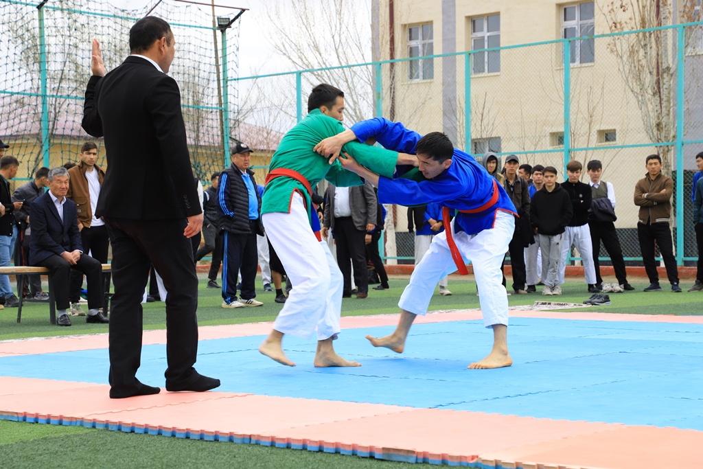 Bayram seyili sheńberinde milliy sport oyınları boyınsha birqatar jarıslar bolıp ótti. Fakultetlerde oqıp atırǵan studentler ata-babalarımızdan miyras bolıp kiyatırǵan milliy gúres, tas kóteriw, arqan tartısıw, qol gúresi hám basqa da sport túrleri boyınsha ózleriniń imkaniyatların sınaqtan ótkerdi.