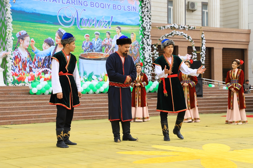 Bayram ilajında institut rektorı Quvondiq Qodirov hám Qaraqalpaqstan Respublikası «Nuranıy» qorınıń baslıǵı Tursınbay Abdijabbarov sózge shıǵıp, barlıq qatnasıwshılar hám miymanlardı ulıstıń ullı kúni, shıǵıs xalıqlarınıń jańalanıw hám jasarıw áyyyamı, mıń jıllardan berli ruwxıy turmısımızdıń ajıralmas bólegine aylanǵan – Nawrız bayramı menen qutlıqladı.