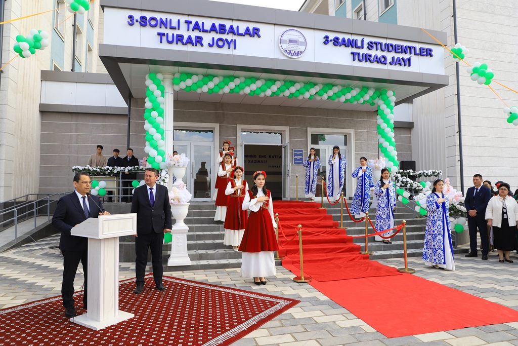 Usı jıldıń 29-mart kúni Ájiniyaz atındaǵı Nókis mámleketlik pedagogikalıq institutında jańadan qurıp pitkerilgen studentler turaq jayı, sport kompleksi hám úlken sport maydanlarınıń paydalanıwǵa tapsırılıwına arnalǵan saltanatlı ilaj bolıp ótti.