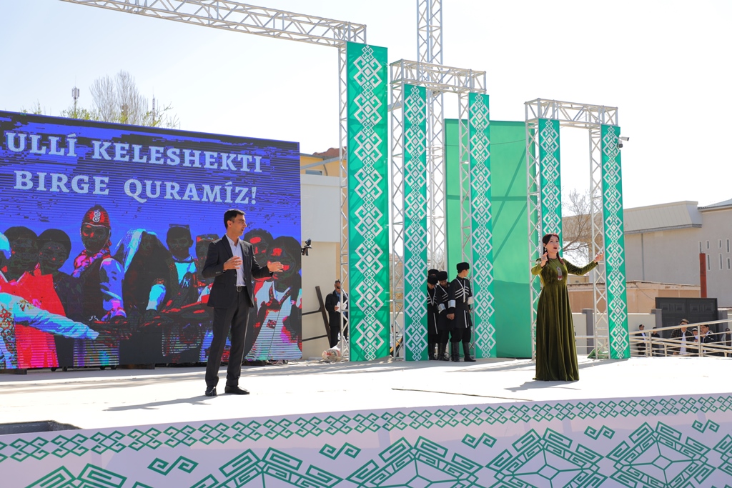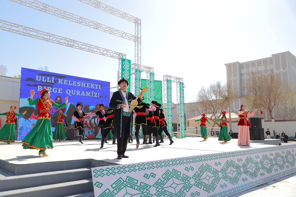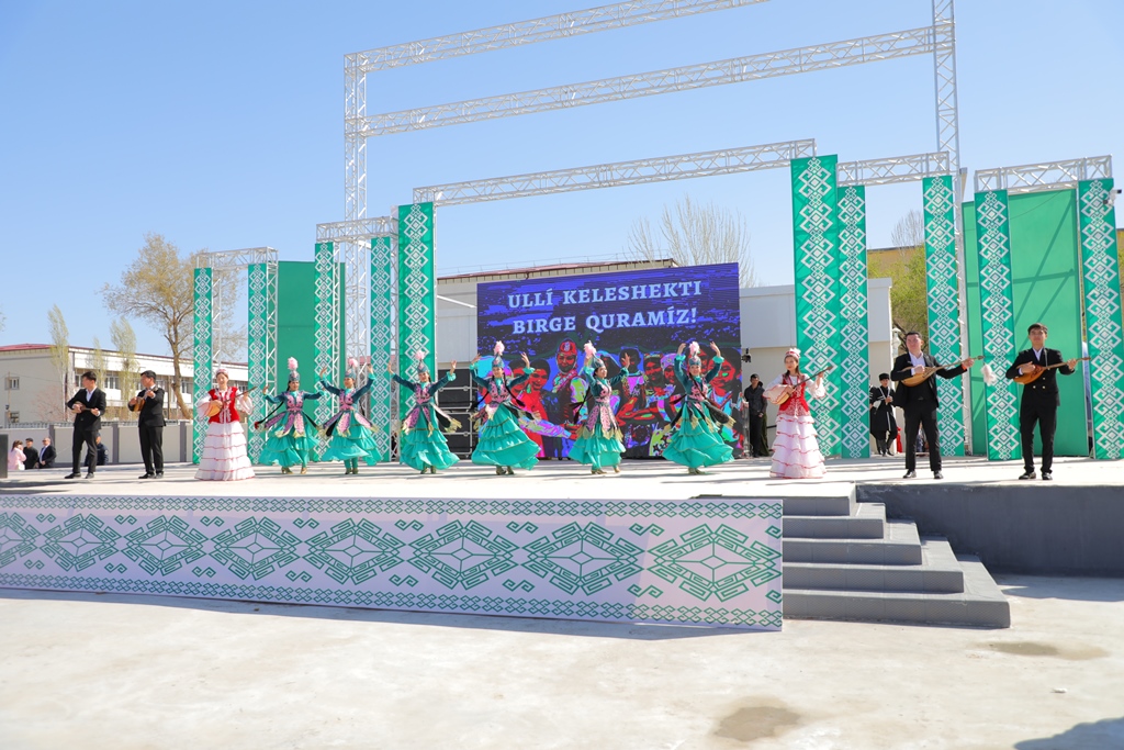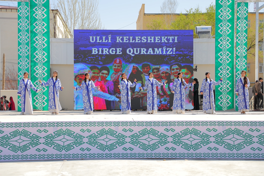 Bayram ilajında Ájiniyaz atındaǵı Nókis mámleketlik pedagogikalıq institutınıń qábiletli student-jasları atqarıwındaǵı koncert baǵdarlaması xalqımızǵa bayram keypiyatın inám etti.