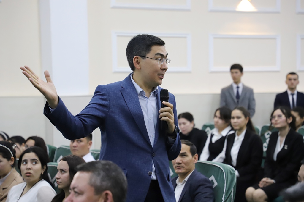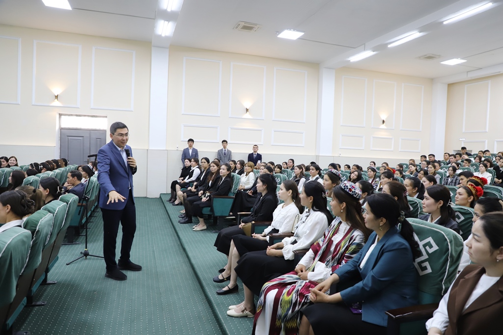 Búgin, 12-aprel kúni Ájiniyaz atındaǵı Nókis mámleketlik pedagogikalıq institutında Respublikalıq Ruwxıylıq hám aǵartıwshılıq orayınıń baslıǵı Otabek Hasanov instituttıń pitkeriwshi kurs jáne belsendi student-jasları menen ushırastı.