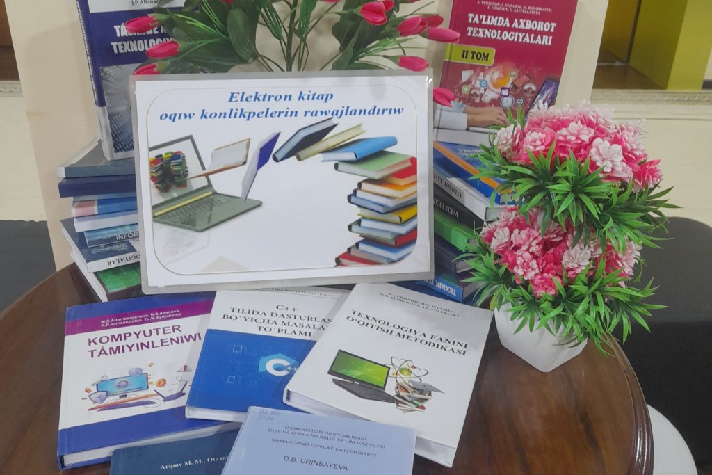Oraydıń elektron málimleme resursları bólimi tárepinen shólkemlestirilgen ilajda informatikanı oqıtıw metodikası kafedrasınıń baslıǵı J.Ótepbergenov, usı kafedra docenti Z.Ilyasova hám assistent-oqıtıwshısı L.Saxanovalar elektron kitaplardıń turmısımızdaǵı áhmiyeti, ádettegidey kitap penen elektron kitaplardıń óz ara baylanısı, internet tarmaqlarındaǵı elektron kitaplardan paydalanıw jolları haqqında qatnasıwshılarǵa maǵlıwmat berdi.