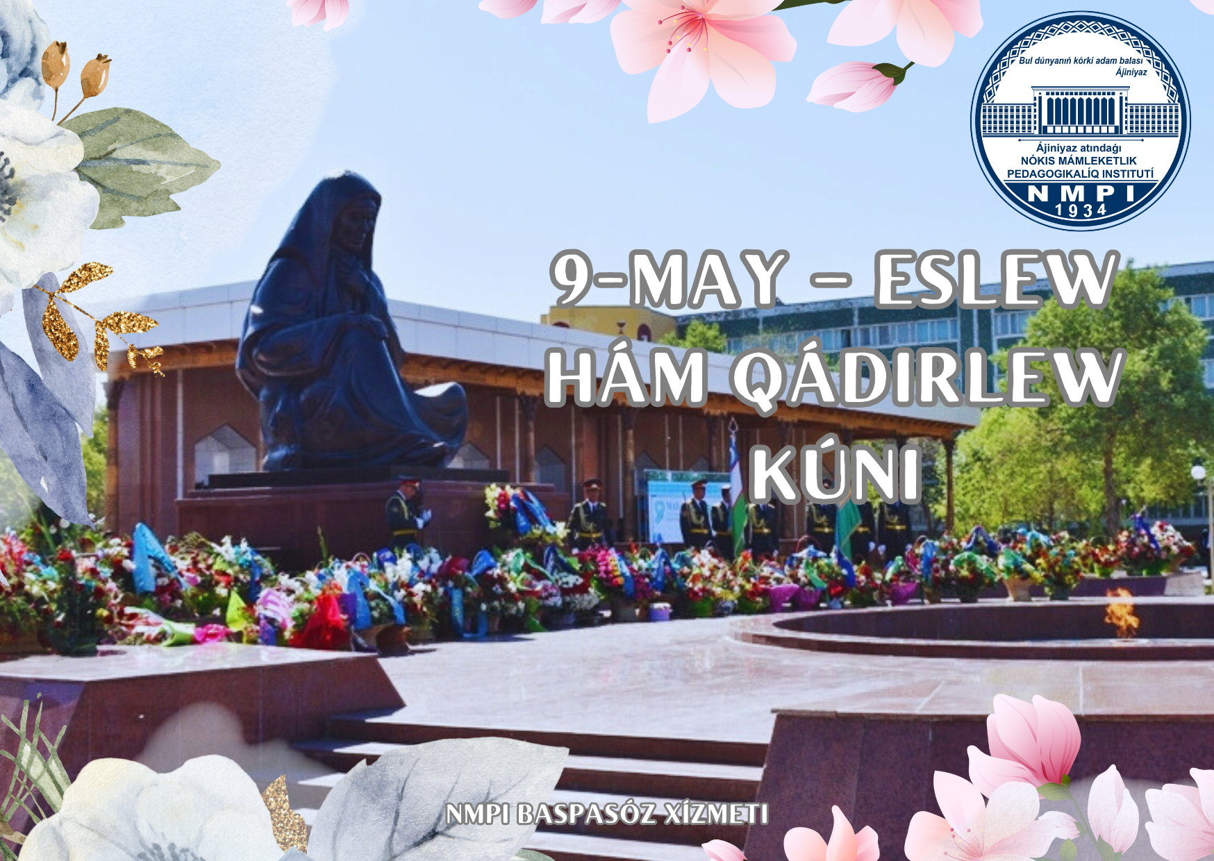 Solay eken, 9-may – Eslew hám qádirlew kúni ulıwma xalıqlıq bayramı menen siz, áziz xalqımızdı institutımız rektoratı hám miynet jámááti atınan shın júrekten qutlıqlayman.