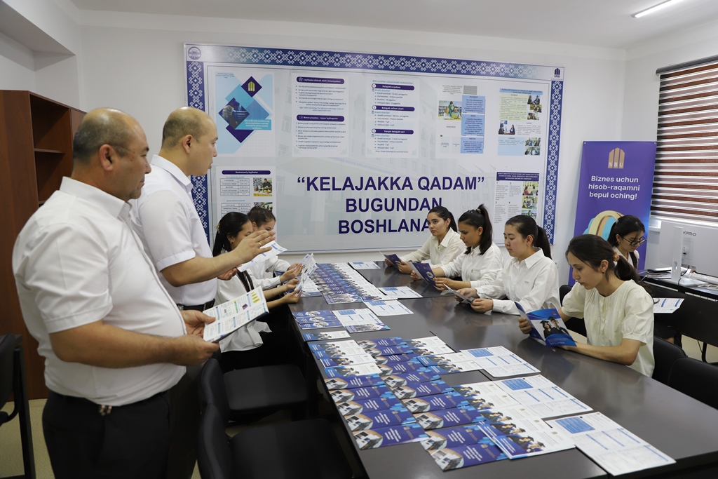 «ÓzMilliybank» akcionerlik jámiyeti Qaraqalpaqstan Respublikası Bas basqarmasınıń «Keleshekke qádem» orayına biriktirilgen qánigeleri tárepinen olarǵa ámeliy járdem beriledi.