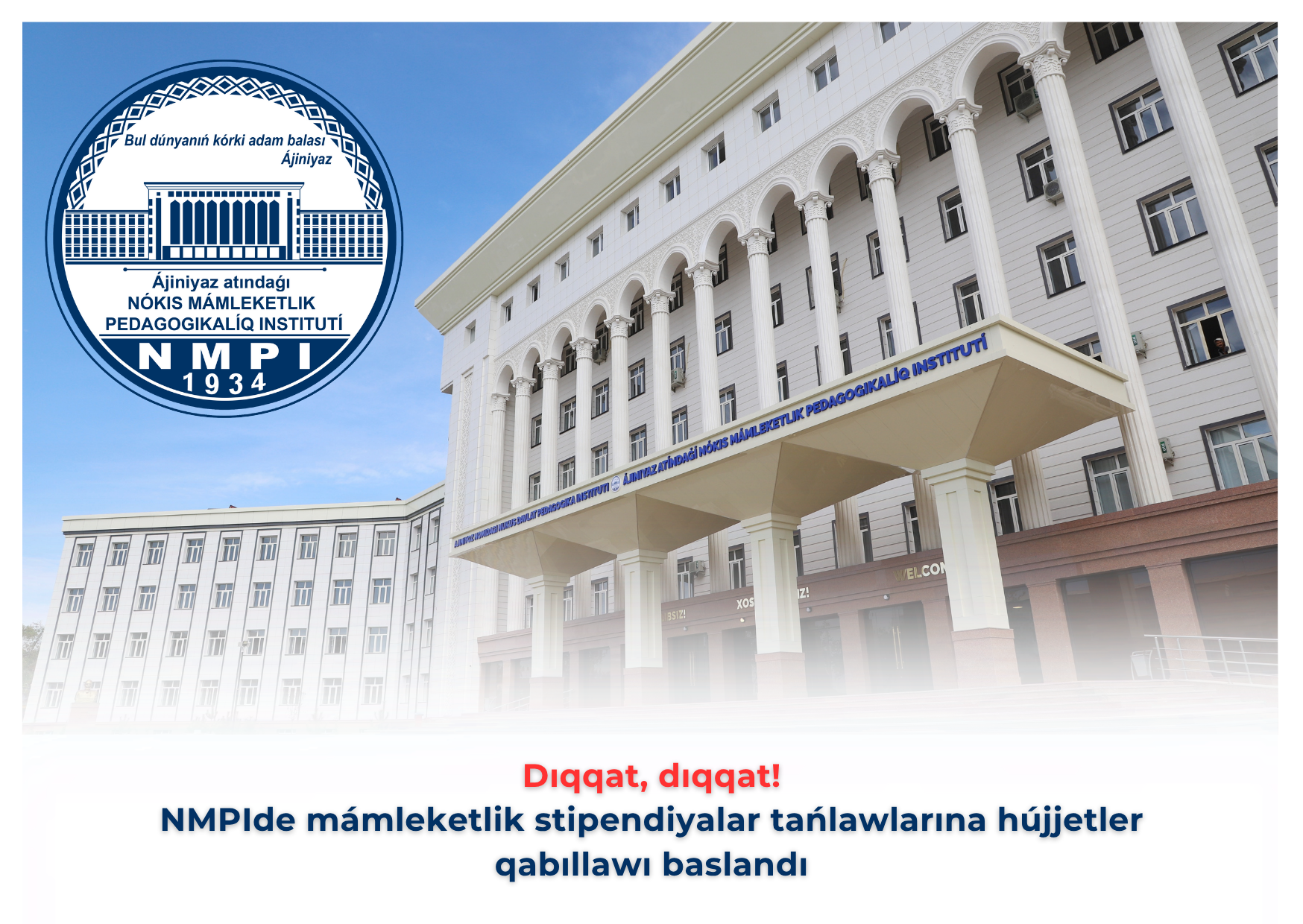 Ájiniyaz atındaǵı Nókis mámleketlik pedagogikalıq institutında 2025-2026-oqıw jılı ushın Ózbekstan Respublikası Prezidenti mámleketlik stipendiyası, ataqlı mámleketlik stipendiyalar hám institut kólemindegi Ájiniyaz Qosıbay ulı stipendiyasına hújjetlerdi qabıllaw baslanǵanlıǵın járiyalaymız.