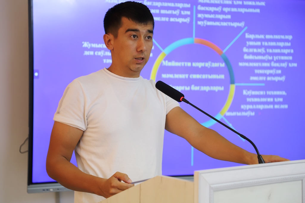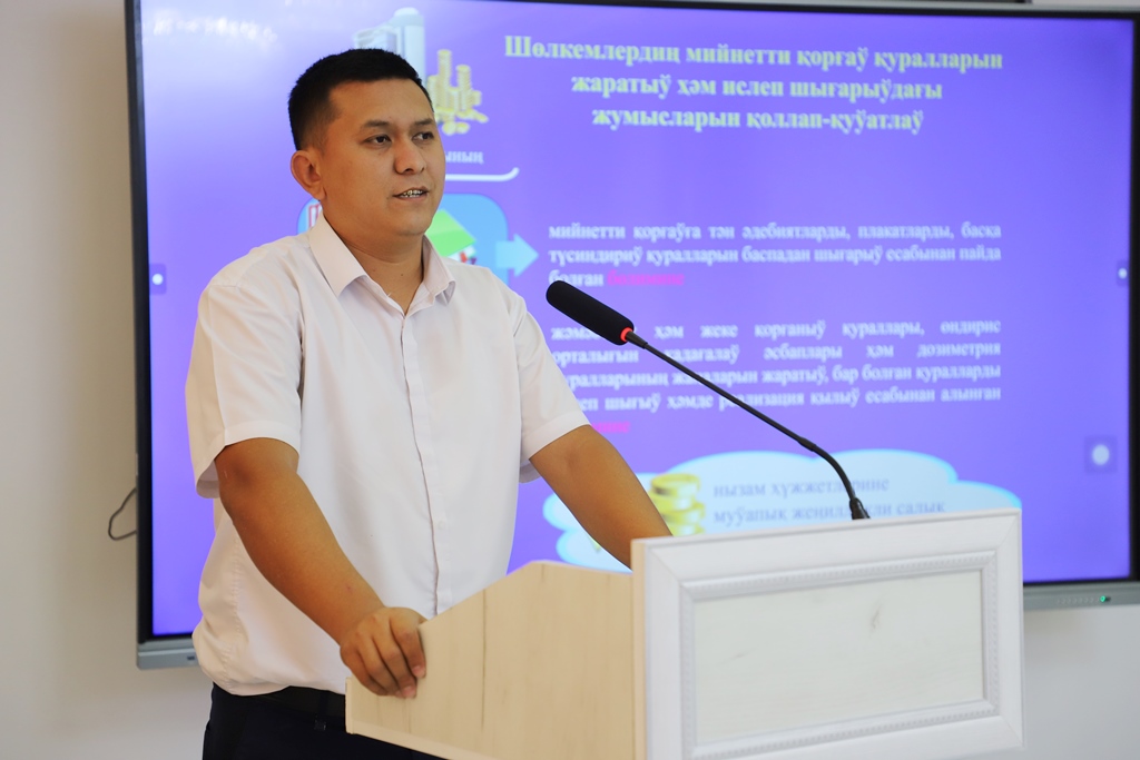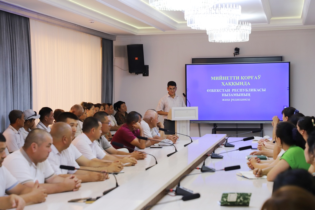 Ushırasıwda Ózbekstan Kásiplik awqamları Federaciyası Qaraqalpaqstan Respublikası Keńesi miynetti qorǵaw boyınsha texnikalıq inspektorı B.Utepbergenov, bas qánigesi S.Urazımbetov, Qaraqalpaqstan Respublikası Kámbaǵallıqtı qısqartıw hám bántlik ministrliginiń miynetti qorǵaw boyınsha texnikalıq inspektorı M.Tájetdinov, sonday-aq, instituttıń tiyisli qánigeleri xızmetkerlerge jańa redakciyadaǵı «Miynetti qorǵaw haqqında»ǵı Ózbekstan Respublikası Nızamınıń mazmunı hám áhmiyeti, xızmetkerlerge múnásip miynet sharayatların jaratıw boyınsha belgilengen wazıypalar haqqında keń túrde túsinikler berdi.