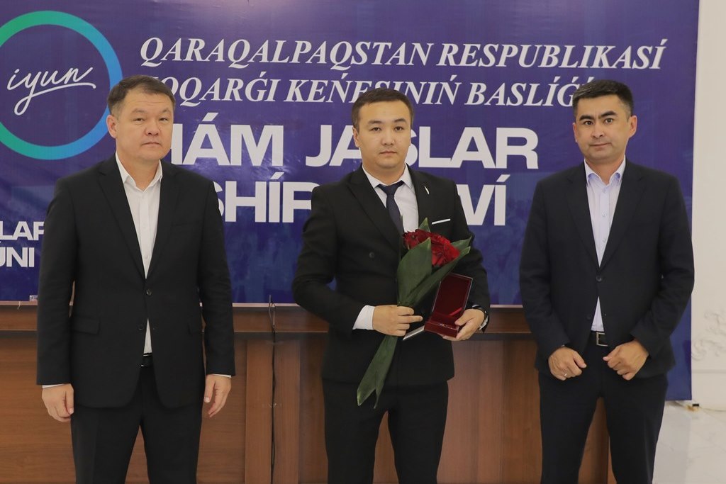 Qaraqalpaqstan Respublikası Joqarǵı Keńesi Prezidiumınıń 2025-jıl 25-iyundaǵı qararına muwapıq, hár tárepleme belsendi hám teńlesleri arasında ayrıqsha jetiskenliklerge erisip, kópshilikke úlgi bolıp atırǵan elimiz jasları qatarında Ájiniyaz atındaǵı Nókis mámleketlik pedagogikalıq institutı Túrkiy tiller fakulteti qaraqalpaq ádebiyatı kafedrasınıń oqıtıwshısı, filologiya ilimleri boyınsha filosofiya doktorı (PhD) Qonısbay Sársenbaev «Úmit ushqını» kókirek belgisi menen sıylıqlandı.
