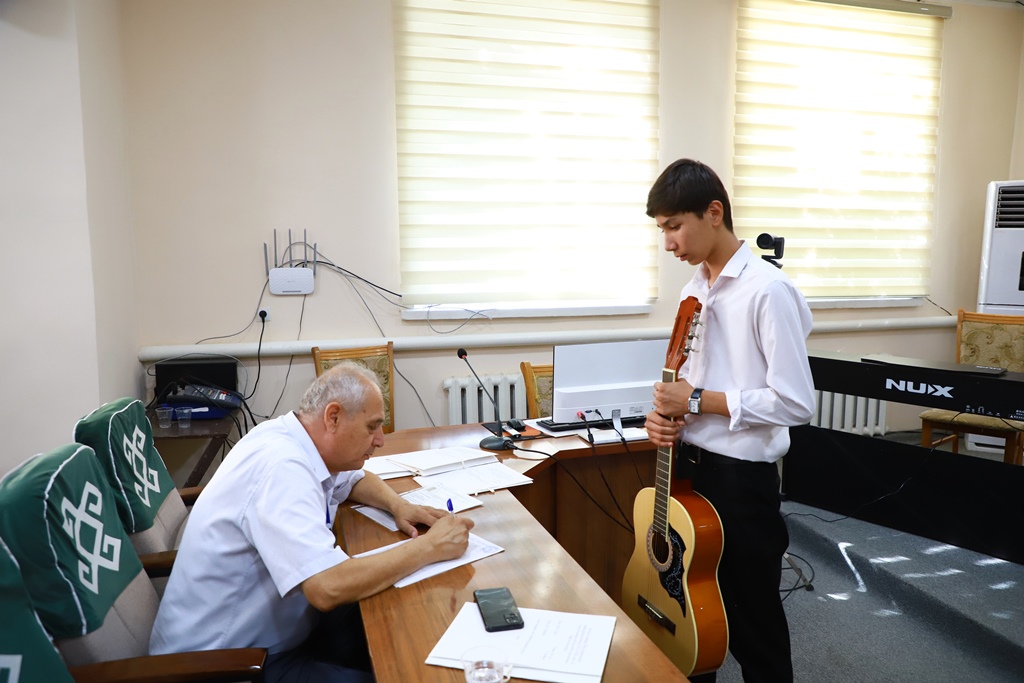 Atap aytqanda, muzıkalıq tálim baǵdarınıń qaraqalpaq hám ózbek toparlarına qabıllaw ushın saz atqarıwshılıǵı hám atqarıw sheberligi, muzıka teoriyası hám solfedjio pánlerinen imtixanlar bolıp ótpekte.